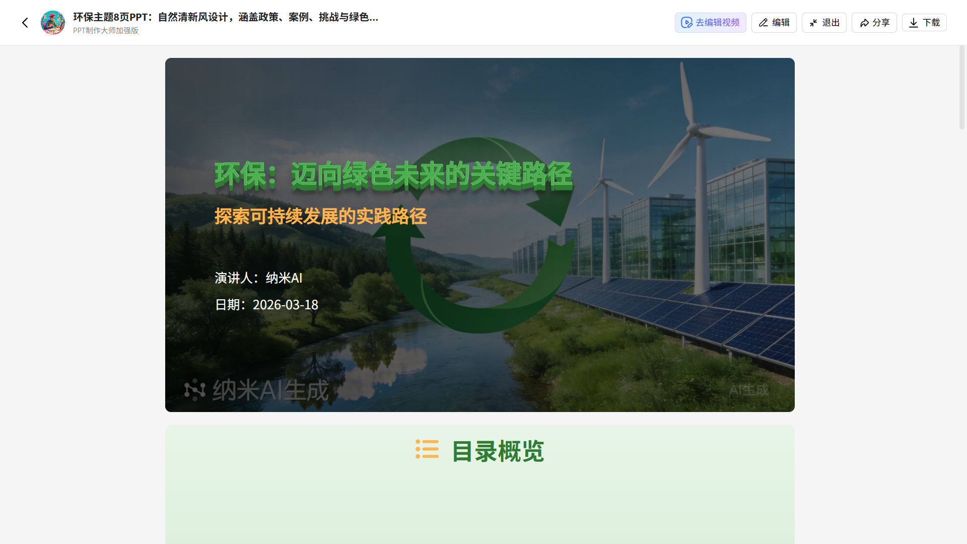AI生成PPT内容。