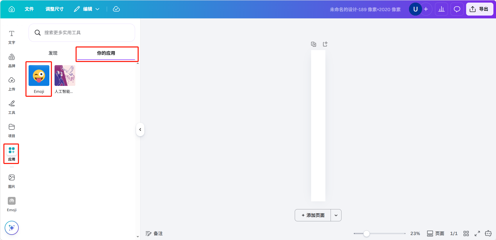 在设计页面点击「应用」>「你的应用」,可以使用添加好的应用。