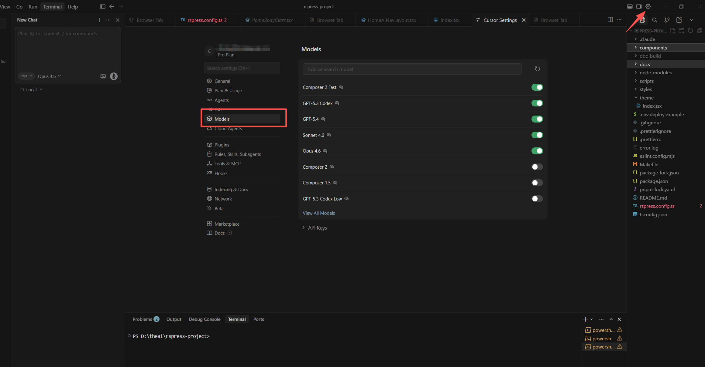 进入 设置 > Models,可以配置默认使用的 AI 模型: