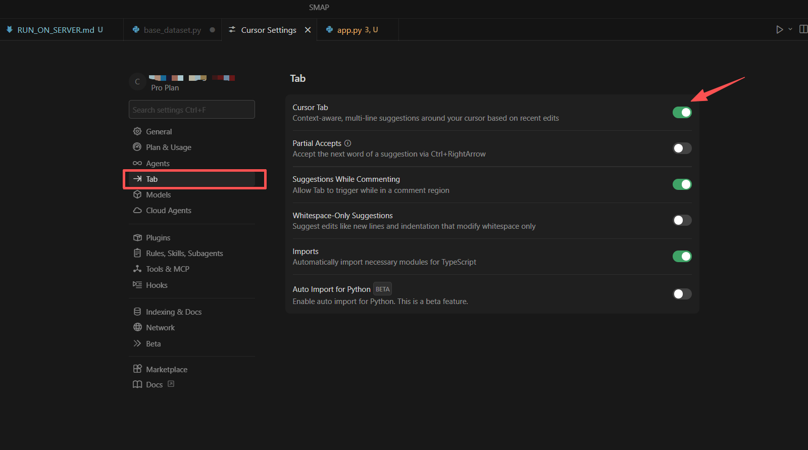 - 保持上下文文件:相关文件在编辑器中打开,Tab 模型会参考这些文件