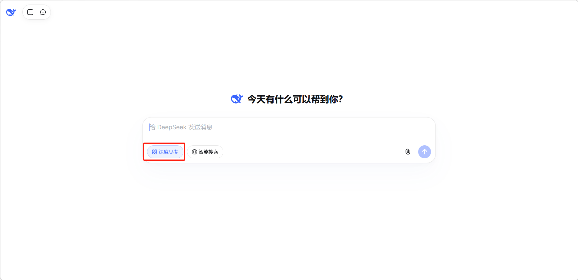 点击输入框左下角的「深度思考」按钮,按钮变为高亮蓝色表示已开启。