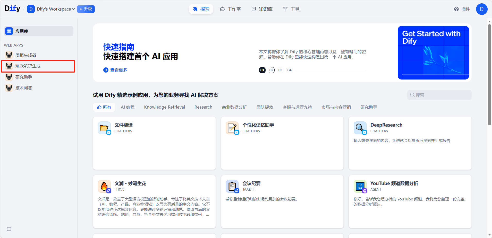 发布后的应用可以在「探索」界面的左侧边栏使用。