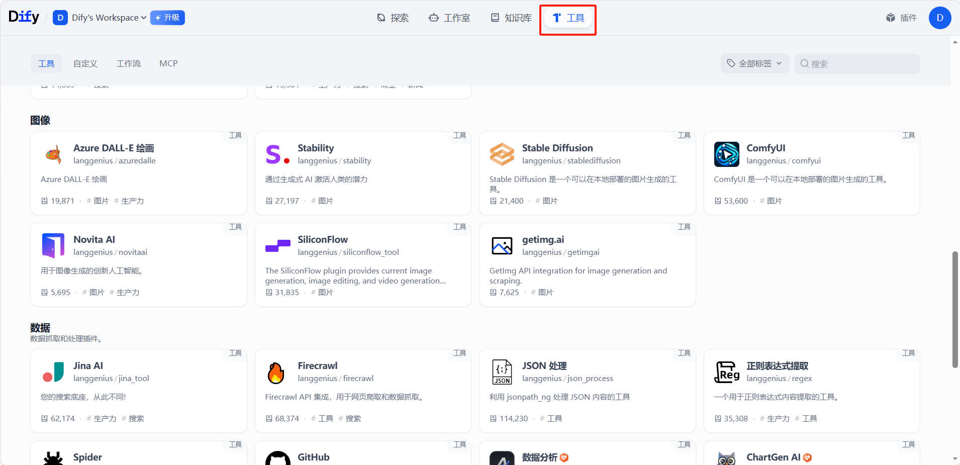 通过 Dify 插件市场可以安装更多工具,热门工具包括:
