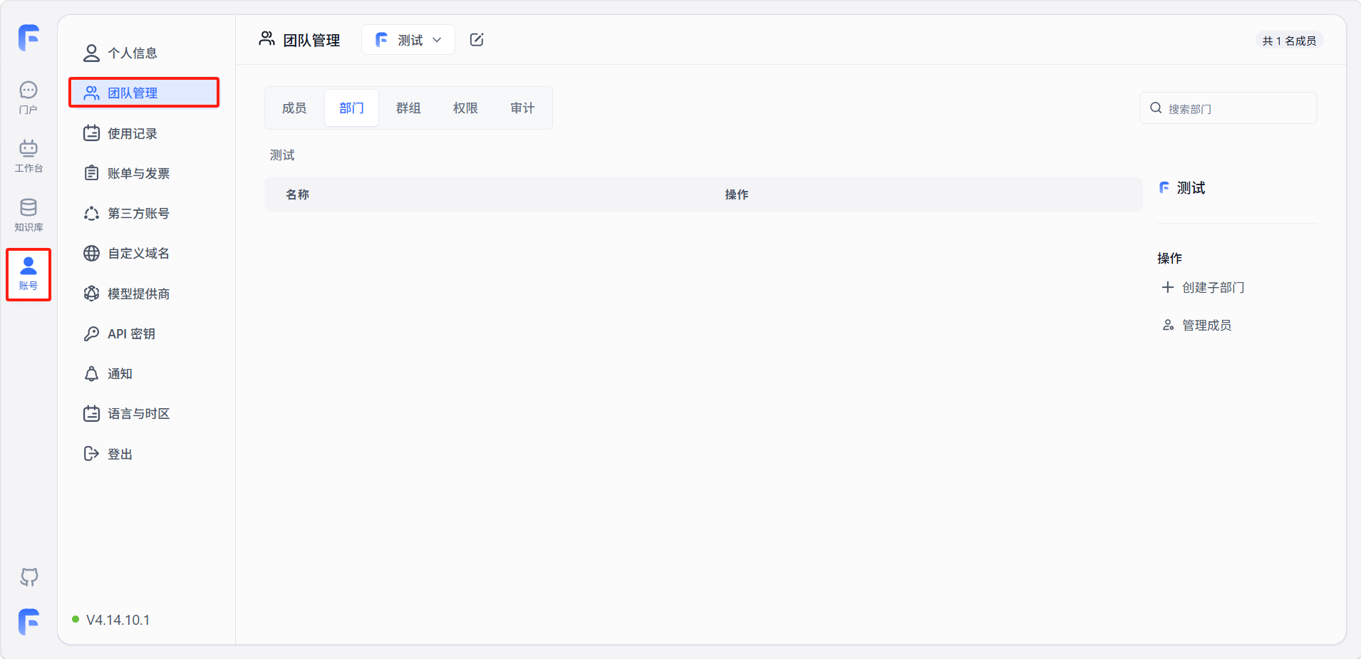 FastGPT 支持团队协作功能,不同版本的团队成员上限不同(免费版1人、基础版5人、高级版50人)。