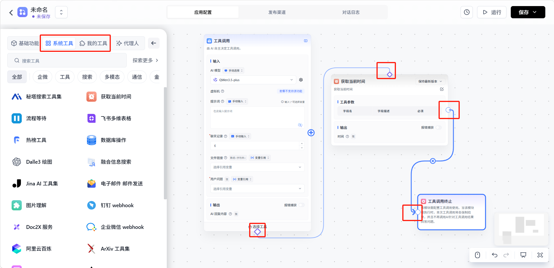 工具调用节点用于在工作流中调用外部工具或封装好的子工作流,终止节点则用于在满足特定条件时提前结束工作流执行。