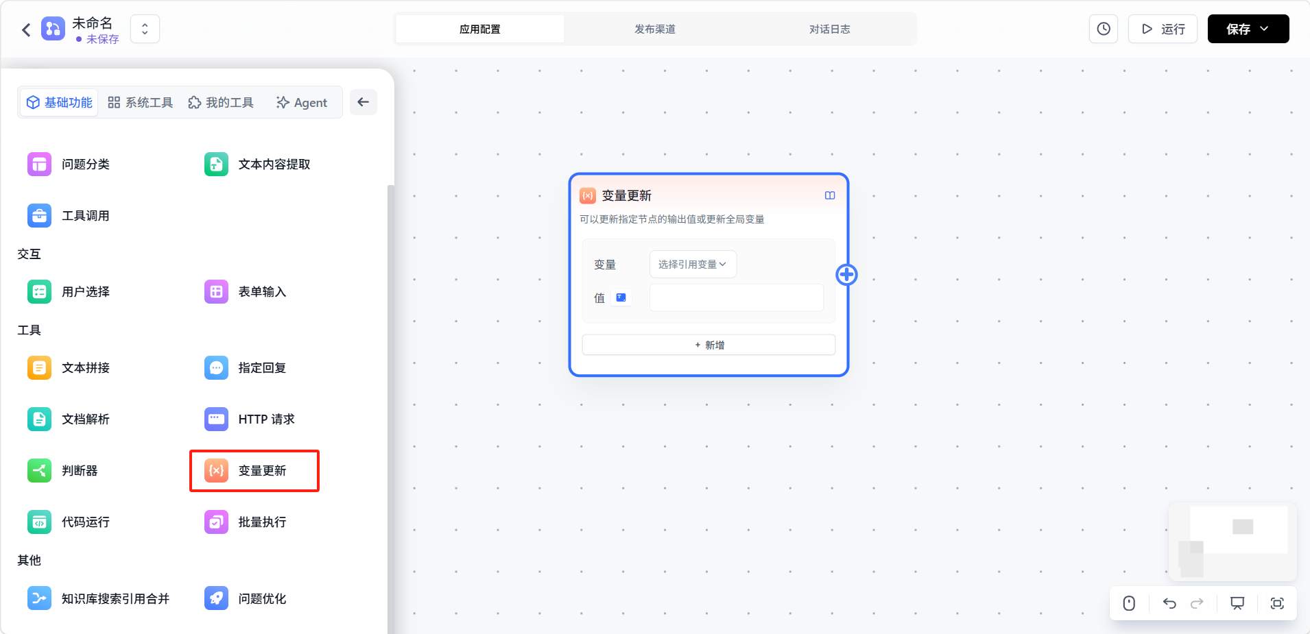 - 灵活输入: 支持通过“手动输入”或引用其他节点输出的方式,为目标变量注入新的数据。