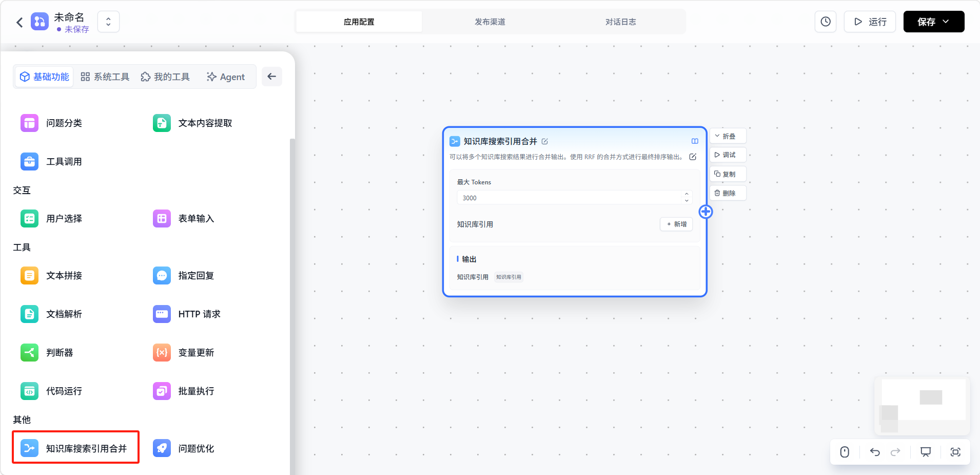 该节点用于将多个知识库搜索节点的结果进行合并和去重。