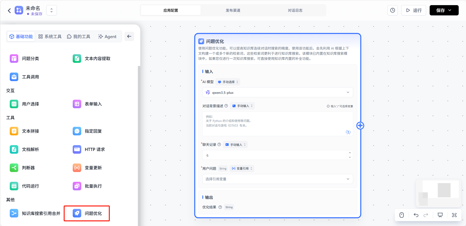 问题优化节点(又称指代消解)用于在多轮对话中,将用户的追问补全为一个完整、独立的问题。