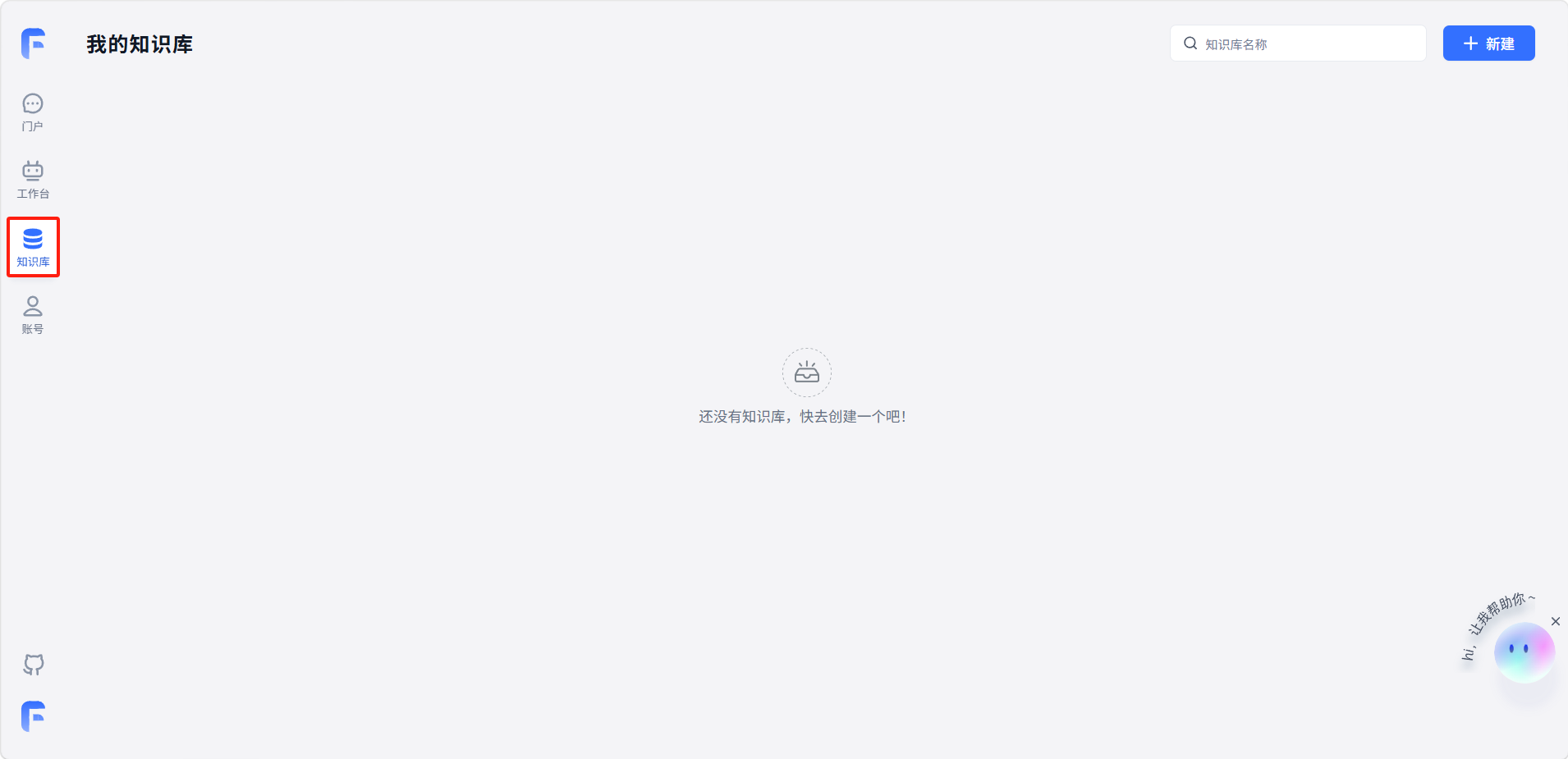 点击左侧导航「知识库」,进入知识库管理页面。