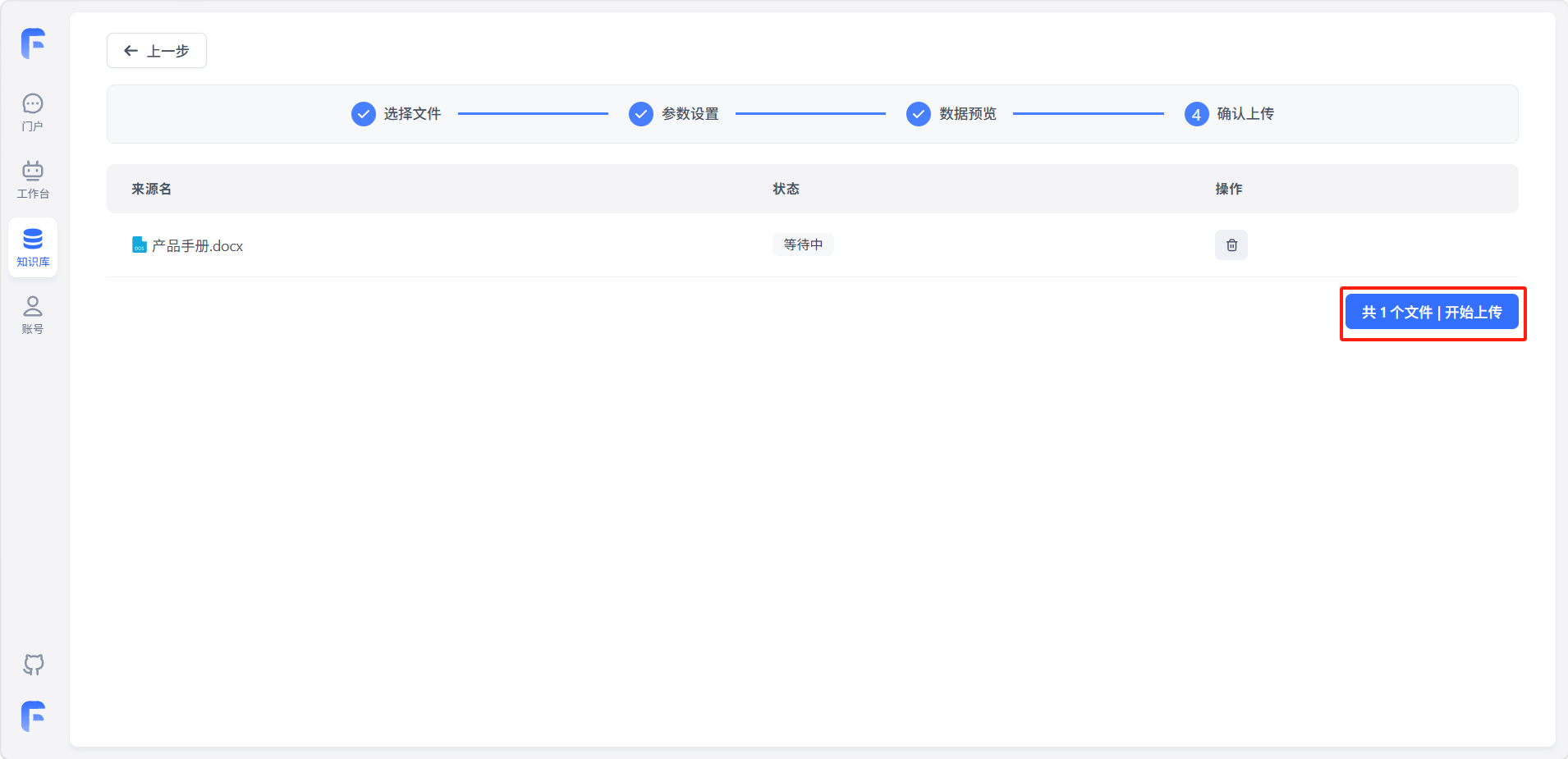 上传成功的数据可以在知识库页面找到。