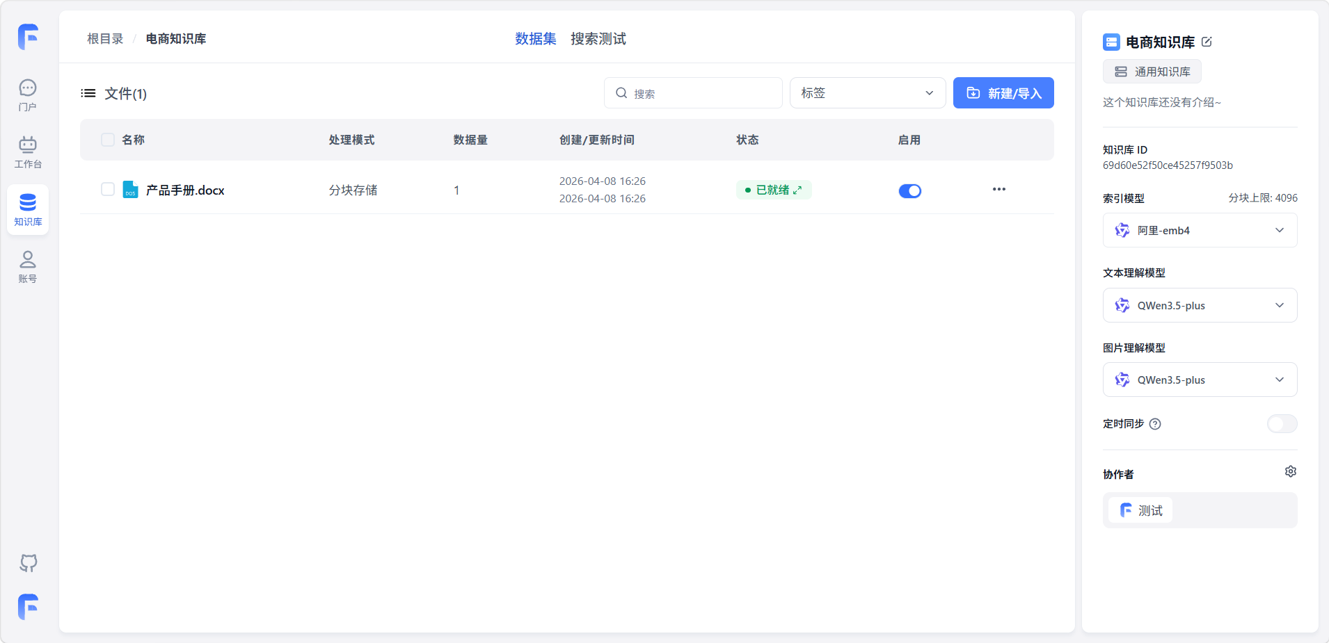 - 搜索测试:利用平台提供的搜索测试功能,持续验证和优化检索效果。