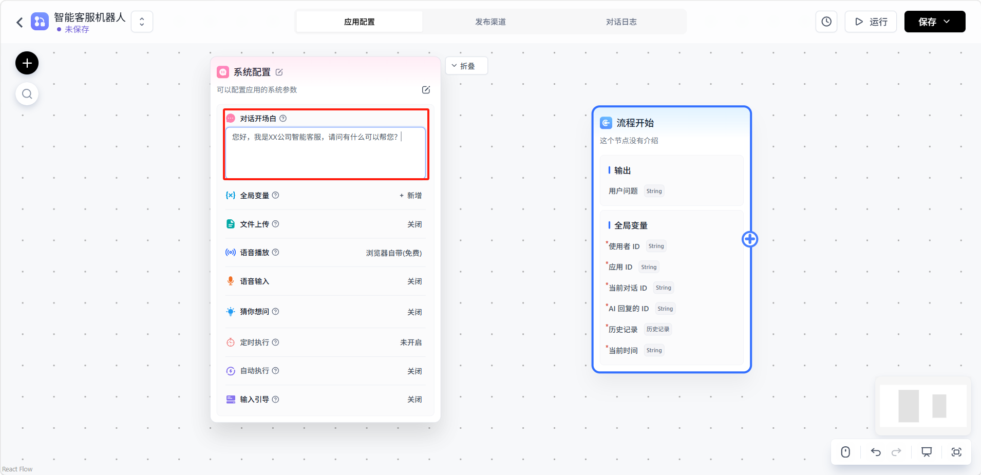 设置系统配置中的对话开场白。