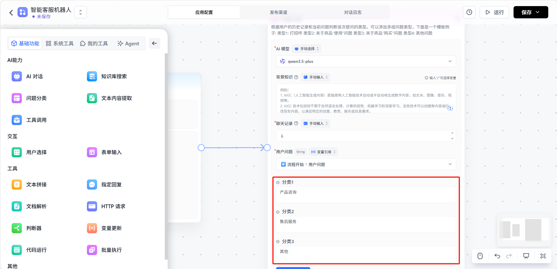 设置「问题分类」节点的分类问题。