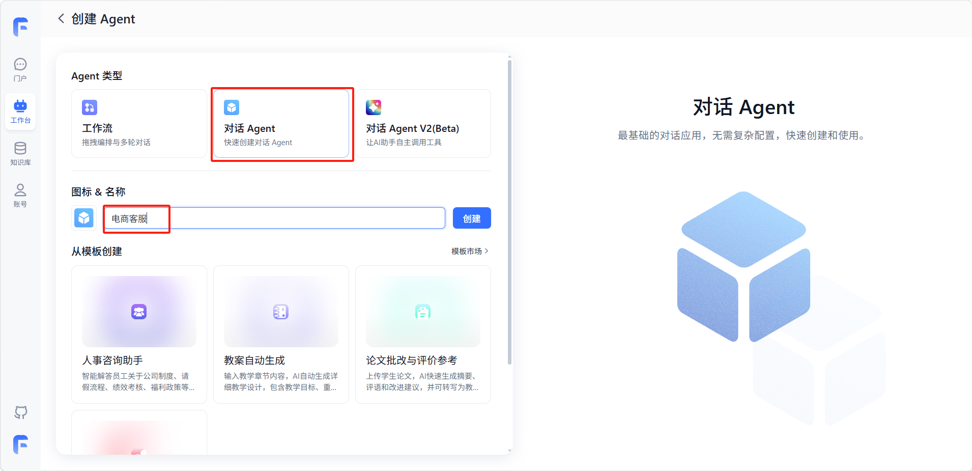 - 对话 Agent V2(Beta):目前还在测试中,后面会大改,建议用对话 Agent。