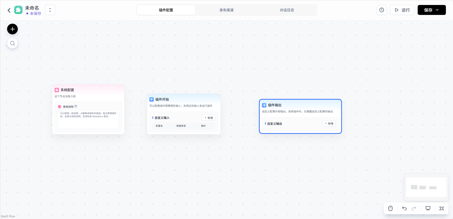 进入工作流编辑器后,可以像创建普通工作流一样拖拽和添加节点、连接逻辑。工作流工具通常需要定义: