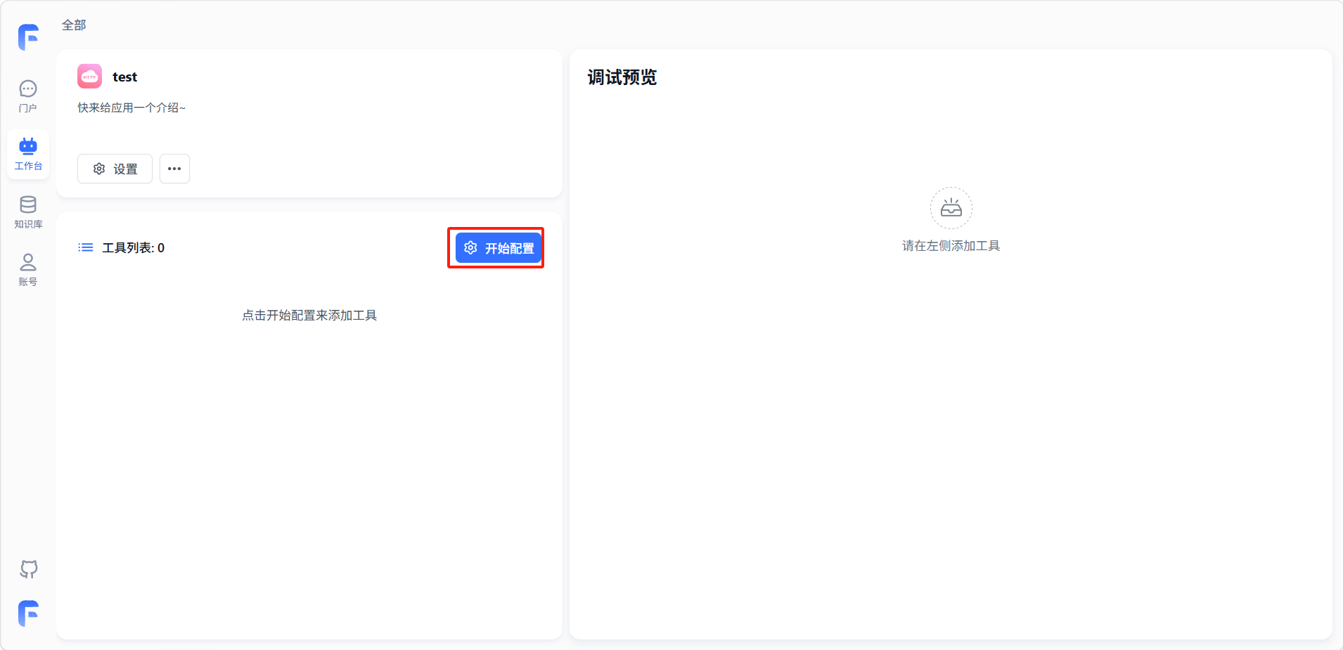 进入工具页面,点击「开始配置」,弹出参数配置面板。