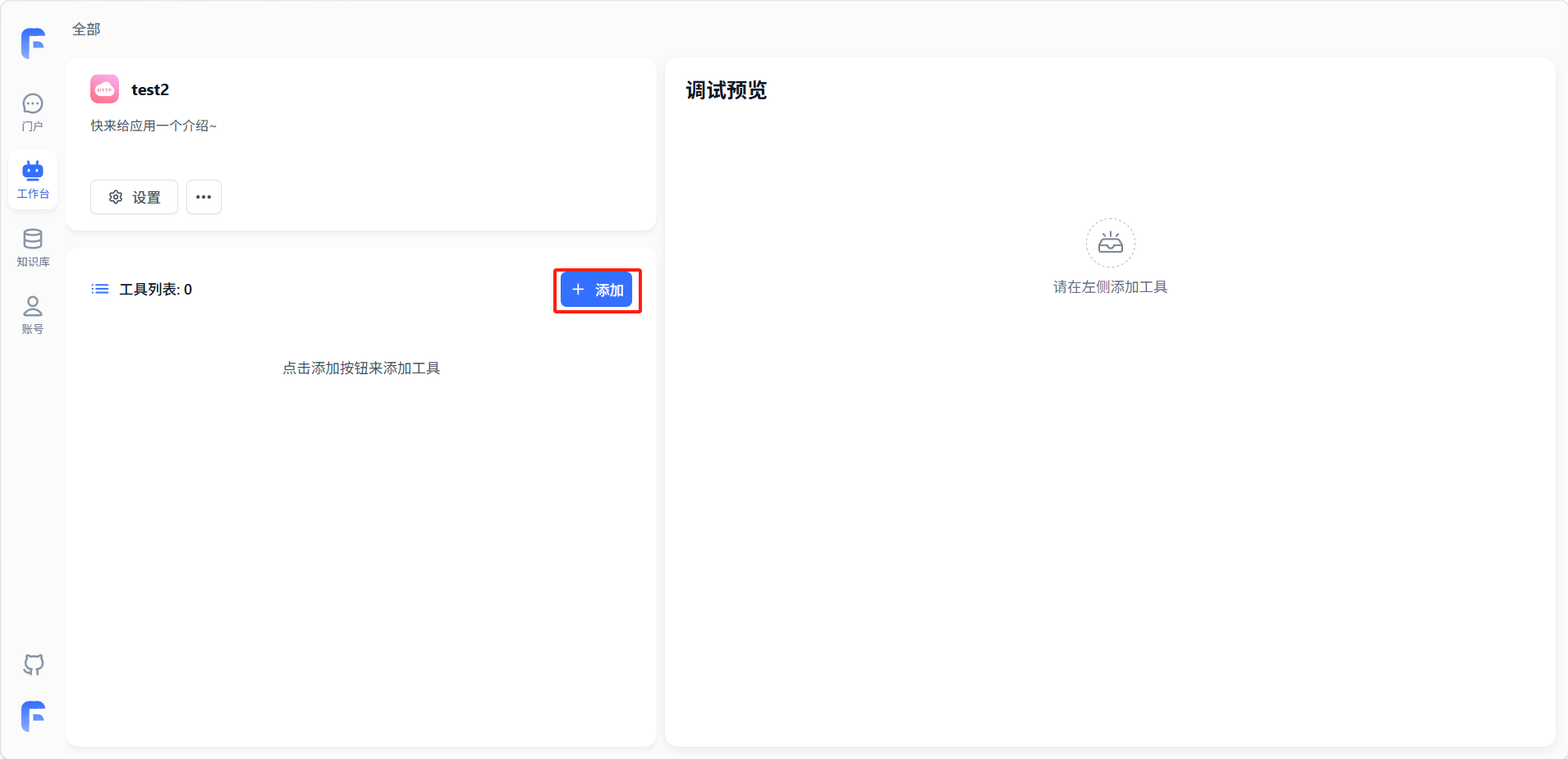进入工具页面,点击「添加」,弹出添加工具面板。