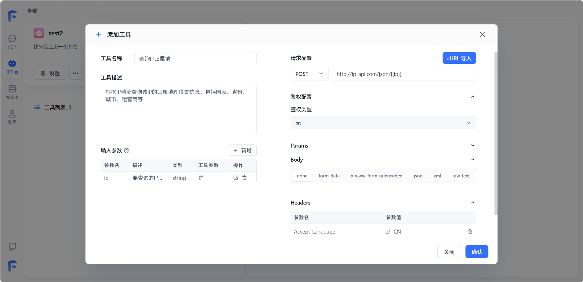 填写完成后点击「确认」,工具即添加到工具列表中。