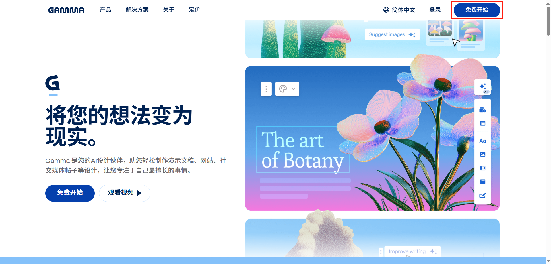 首次登录后,根据提示选择用户的使用场景(工作、教育、个人等),Gamma 会据此为用户推荐合适的模板和功能。