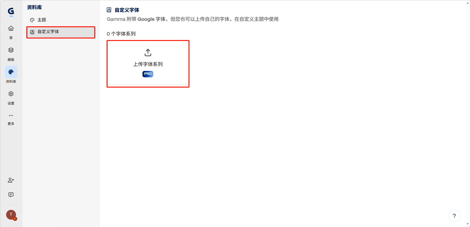 资料库是管理主题和自定义字体的地方,位于左侧导航栏。