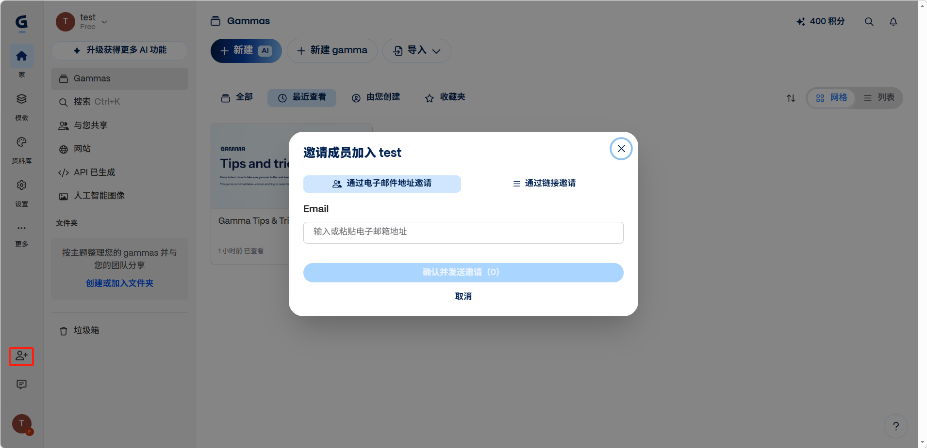 :输入对方邮箱地址,点击「确认并发送邀请」