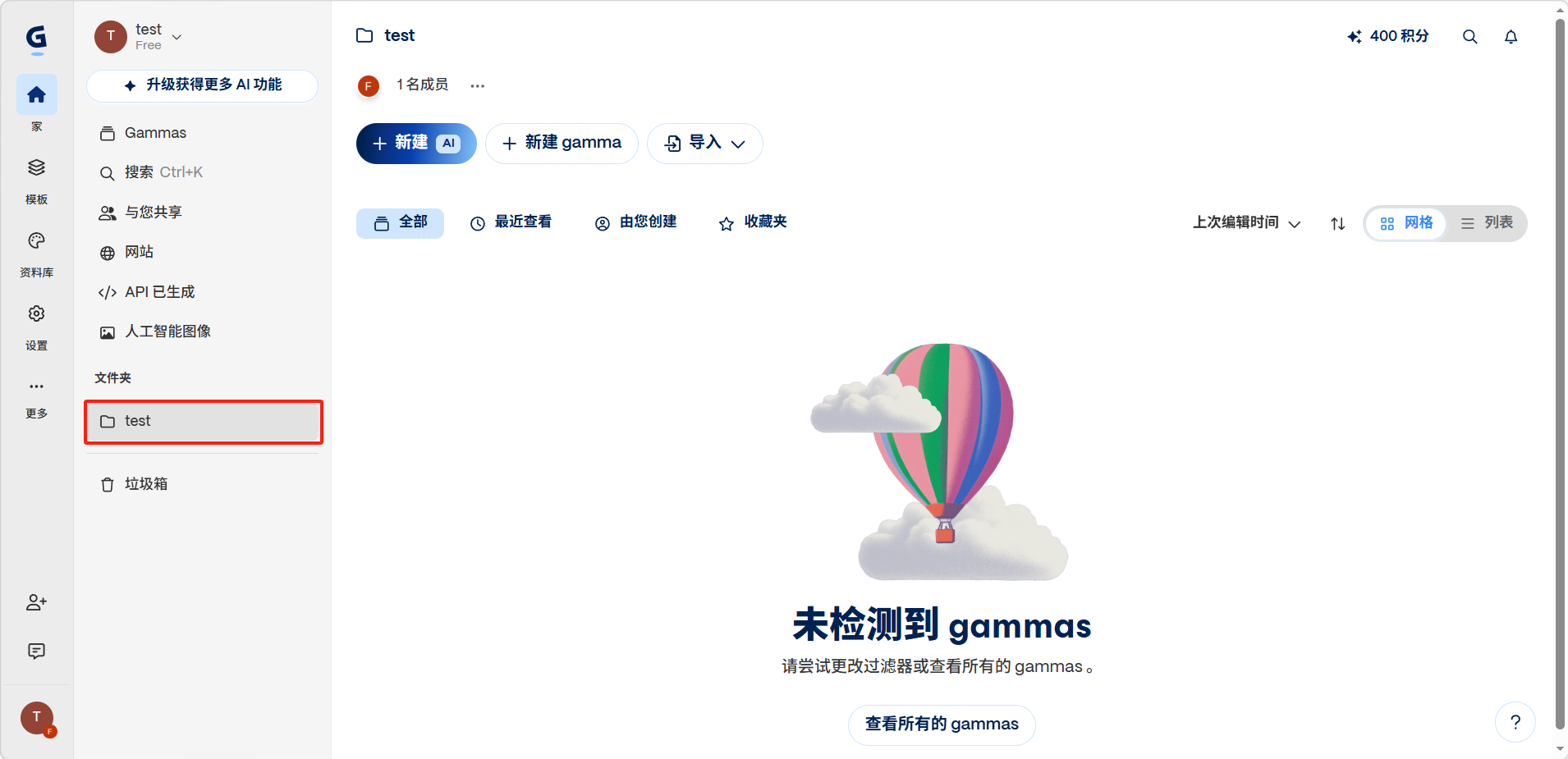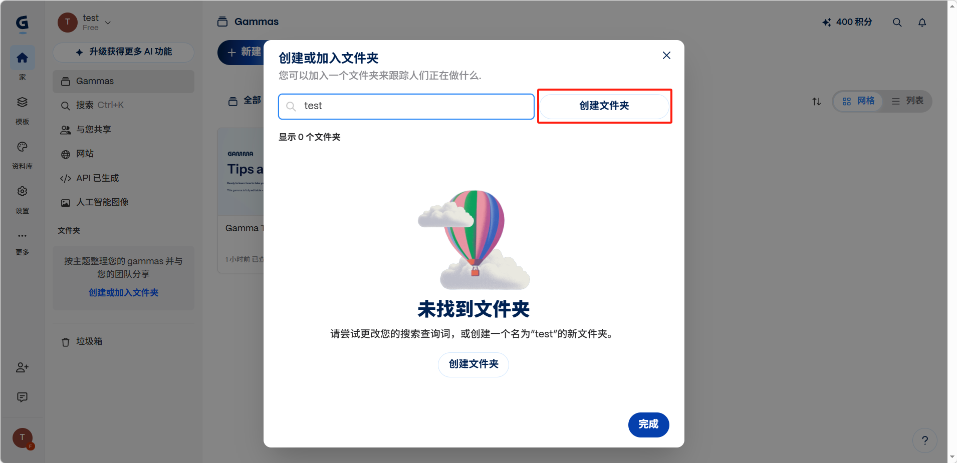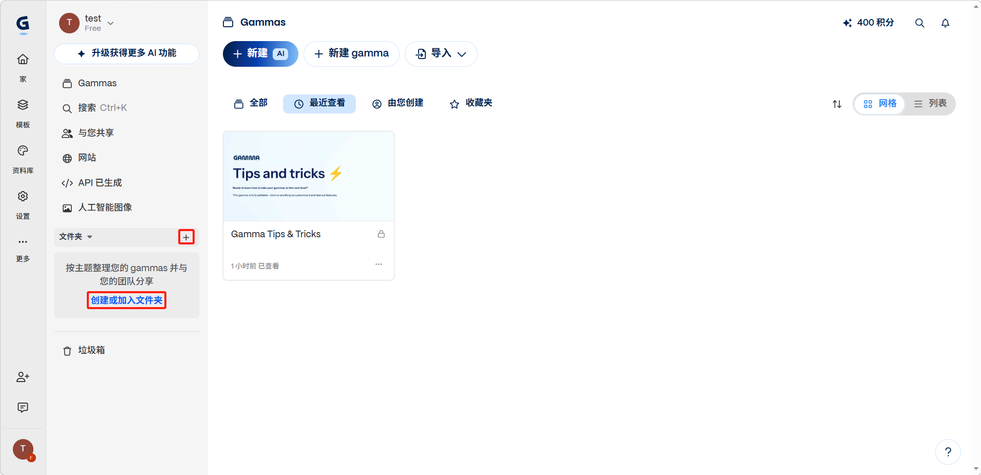 文件夹功能帮助用户按主题整理 Gamma 内容,并便与团队成员分享。