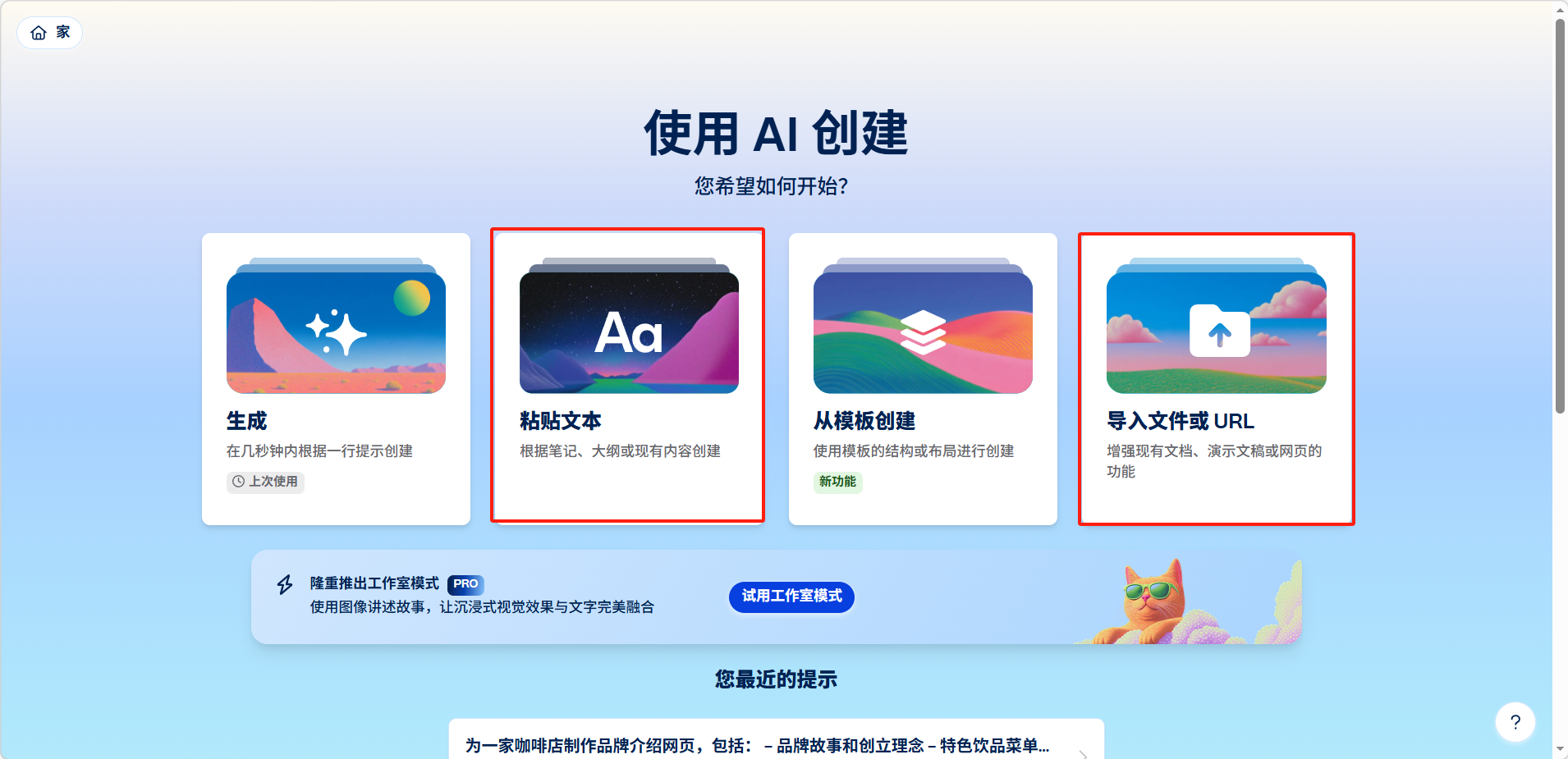 也可以通过「粘贴文本」或「导入文件/URL」的方式,将已有内容转化为网页格式。