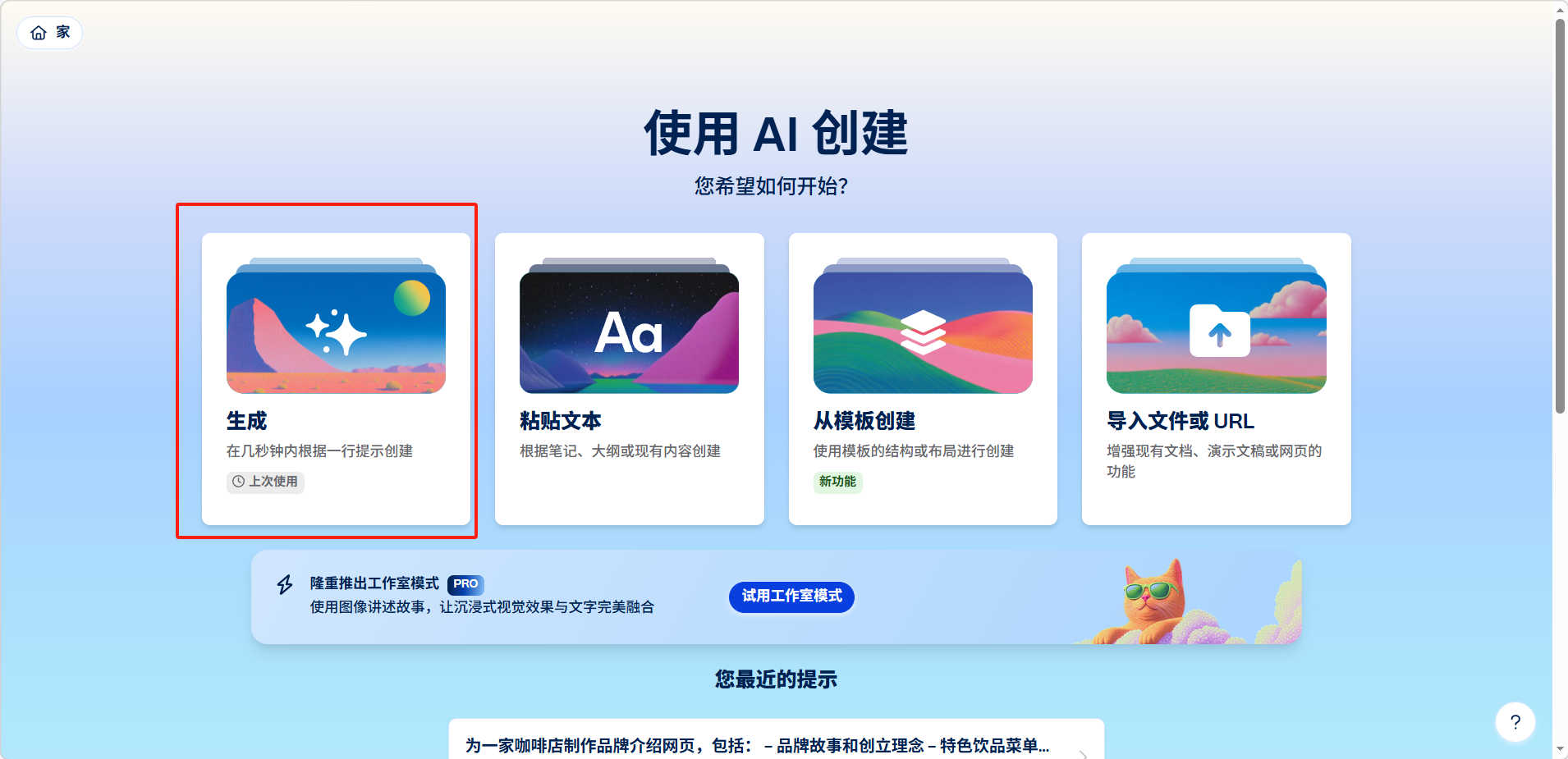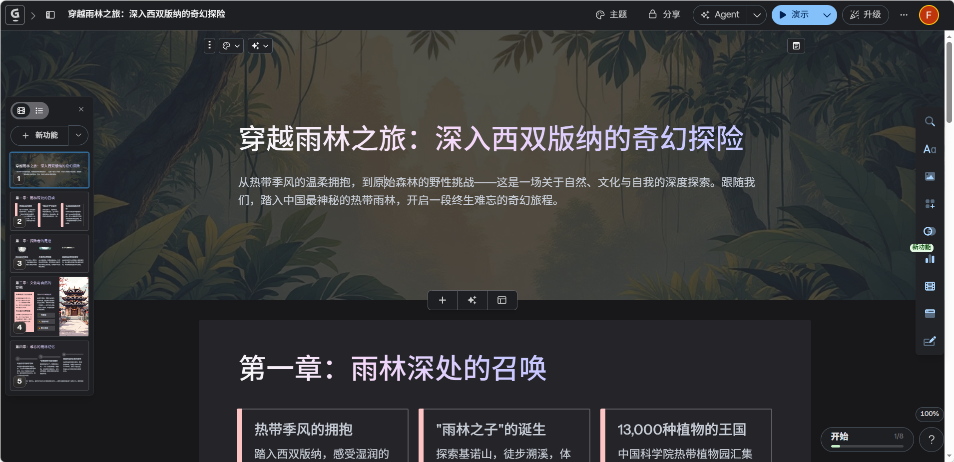 Gamma 的文档功能适合创建较为正式的长篇内容,如报告、方案书、白皮书、培训手册等。与演示文稿的卡片式布局不同,文档模式更接近传统的文档阅读体验,内容以连续滚动的方式呈现,更适合信息密集型的内容。文档同样支持 AI 生成、嵌入多媒体元素和链接分享,并且可以导出为 PDF 格式。