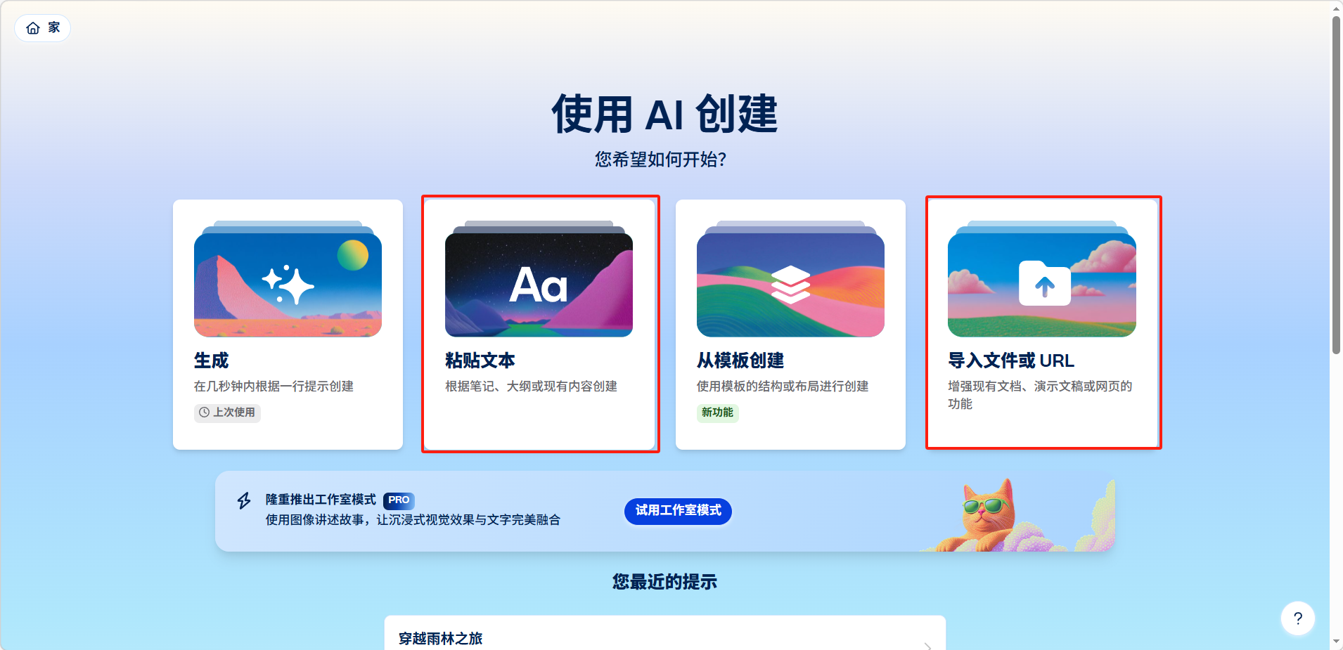 也可以通过「粘贴文本」或「导入文件/URL」的方式,将已有内容转化为文档格式。