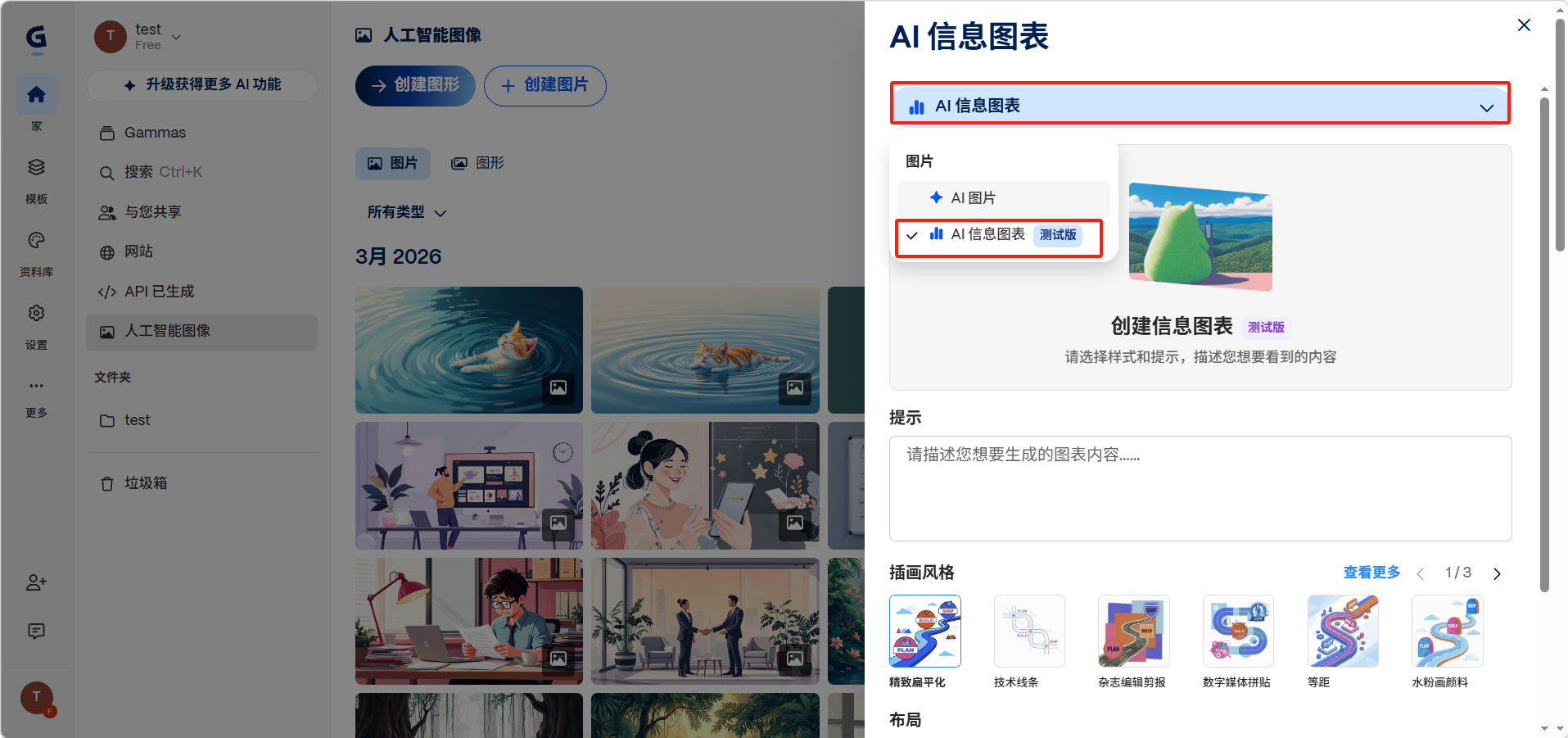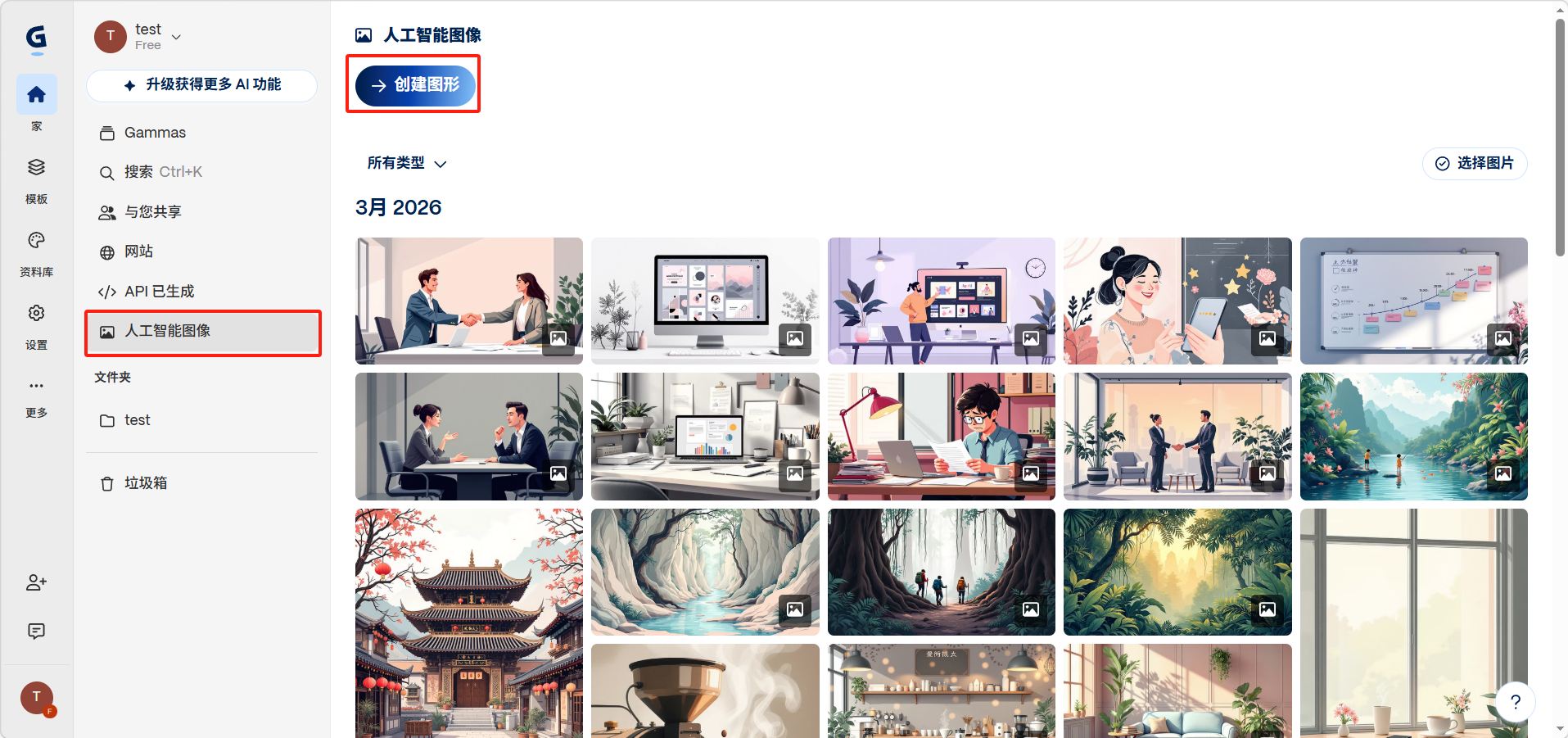 点击「人工智能图像」>「创建图形」。