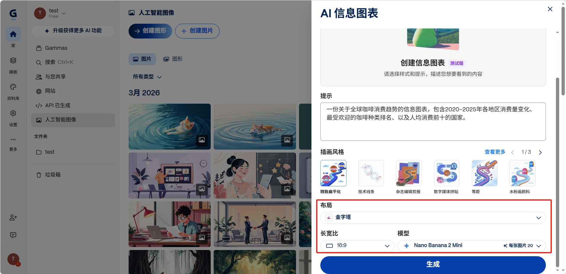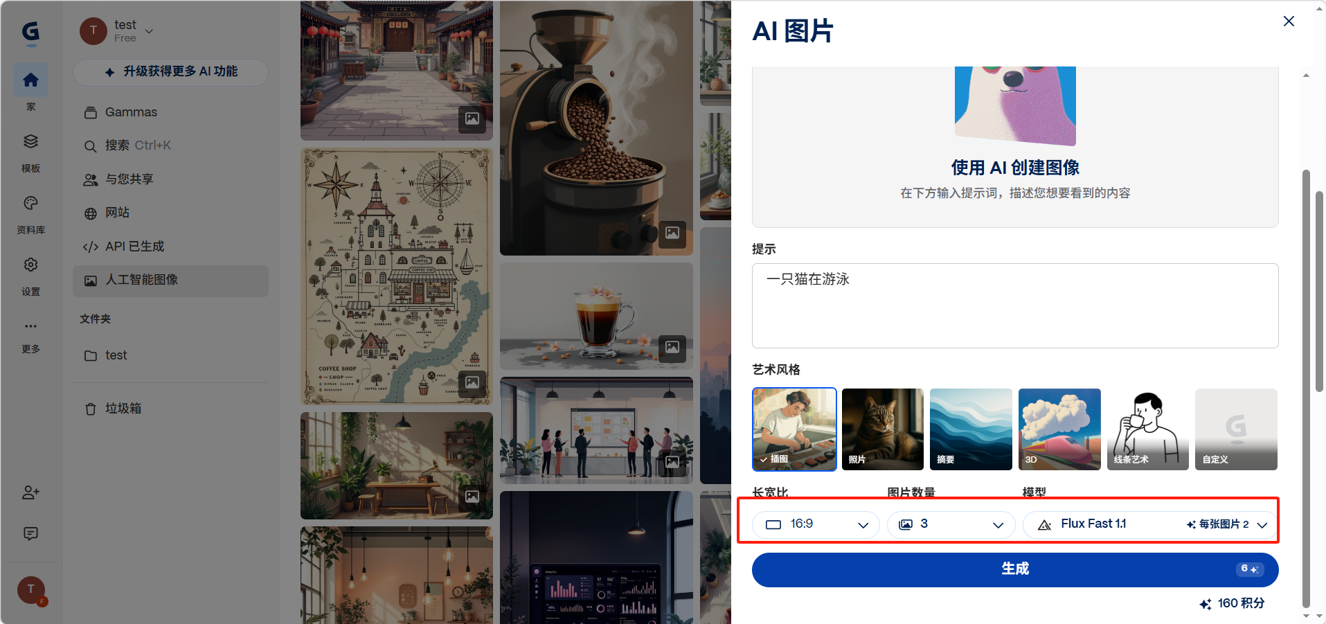 也可以通过「生成」模式进入ai图形生成。
