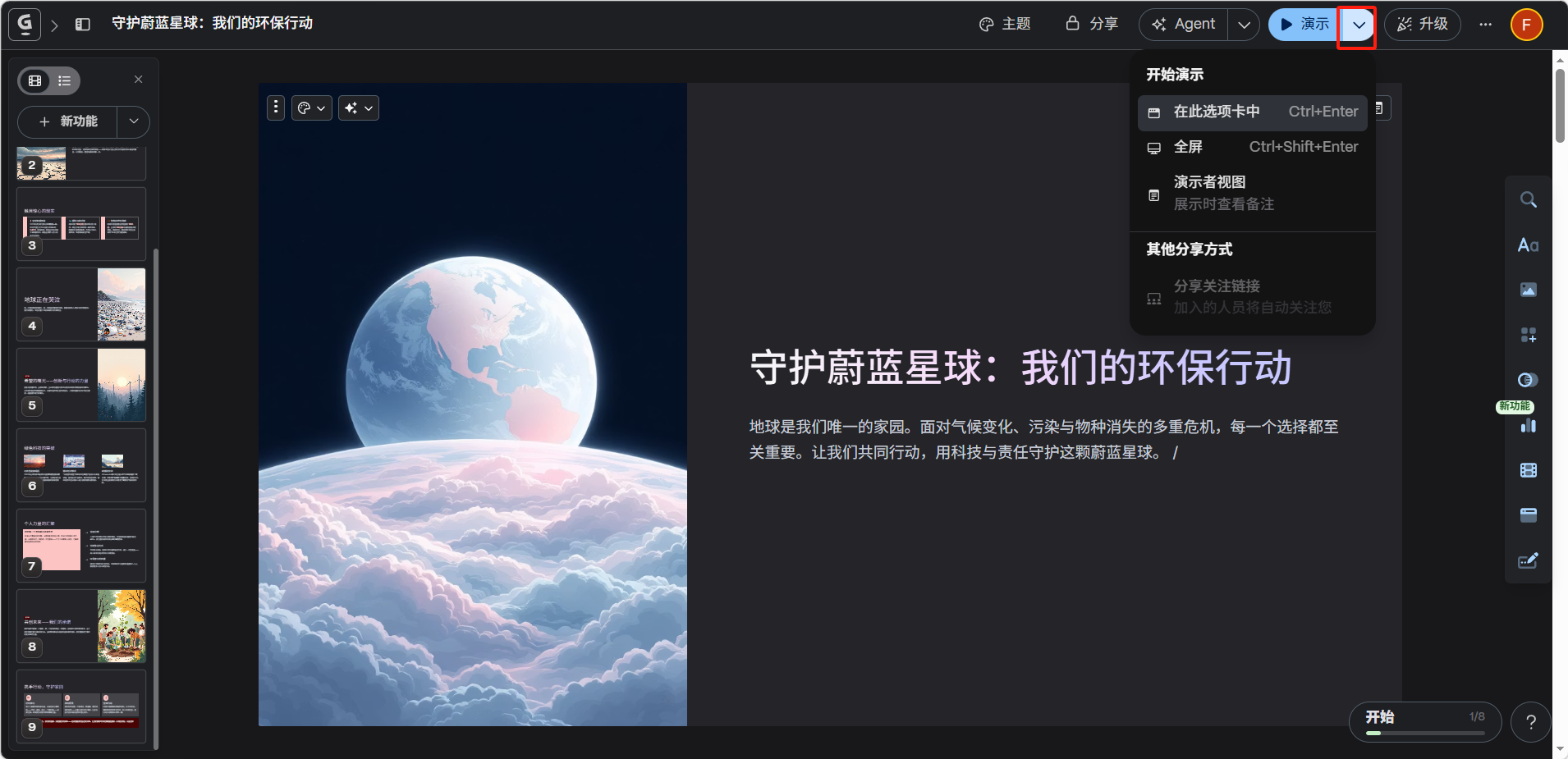 - 在此选项卡中(Ctrl+Enter):在当前标签页开始演示