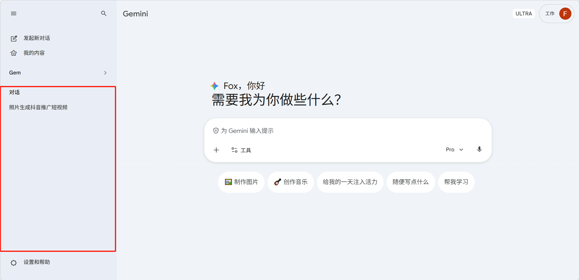 左侧边栏的「对话」区域会按时间顺序列出你的所有历史对话。你可以通过侧边栏顶部的搜索图标查找特定对话。