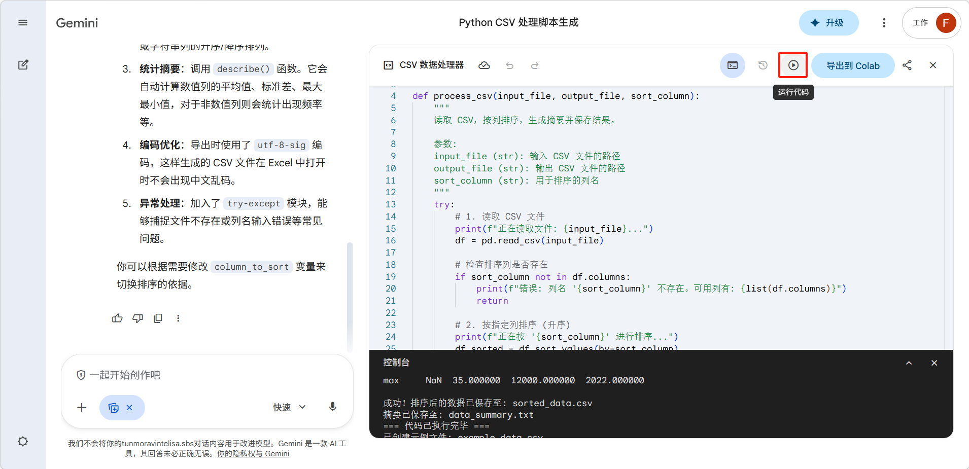 - 输出为新的 CSV 文件