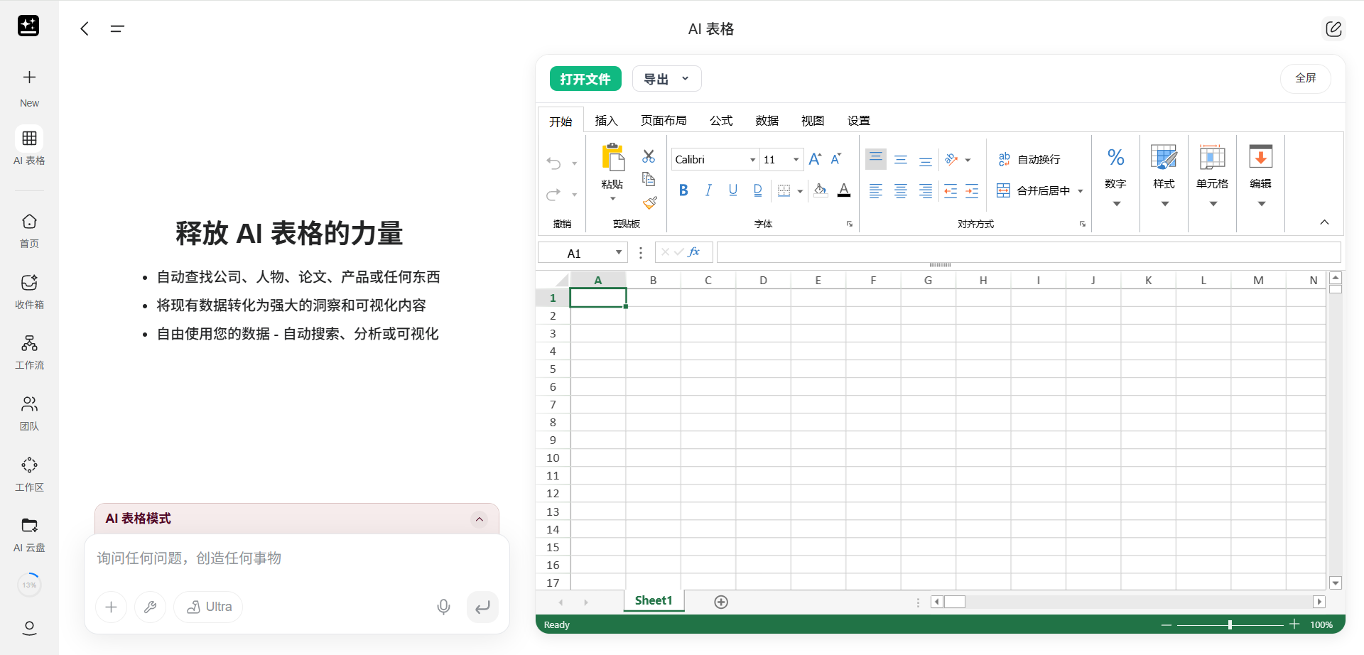 - 自动数据收集:描述需求后 AI 自动从权威来源获取结构化数据