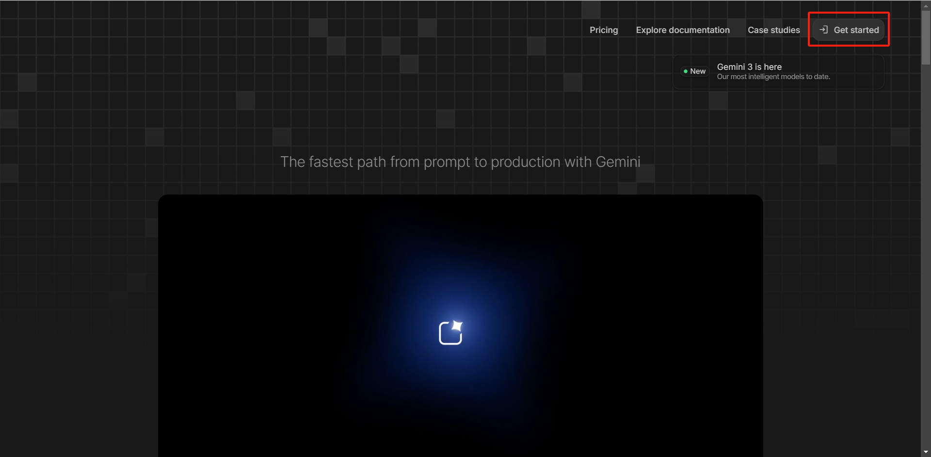 Google AI Studio 使用 Google 账号体系,无需单独注册。点击上方「Get staeted」按钮登录即可。