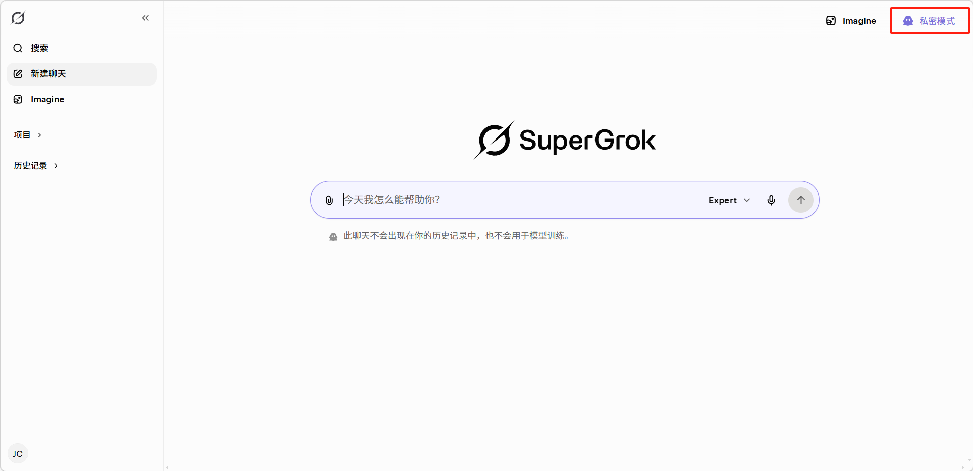 Grok 提供了私密聊天模式,保护用户的敏感对话不被记录。