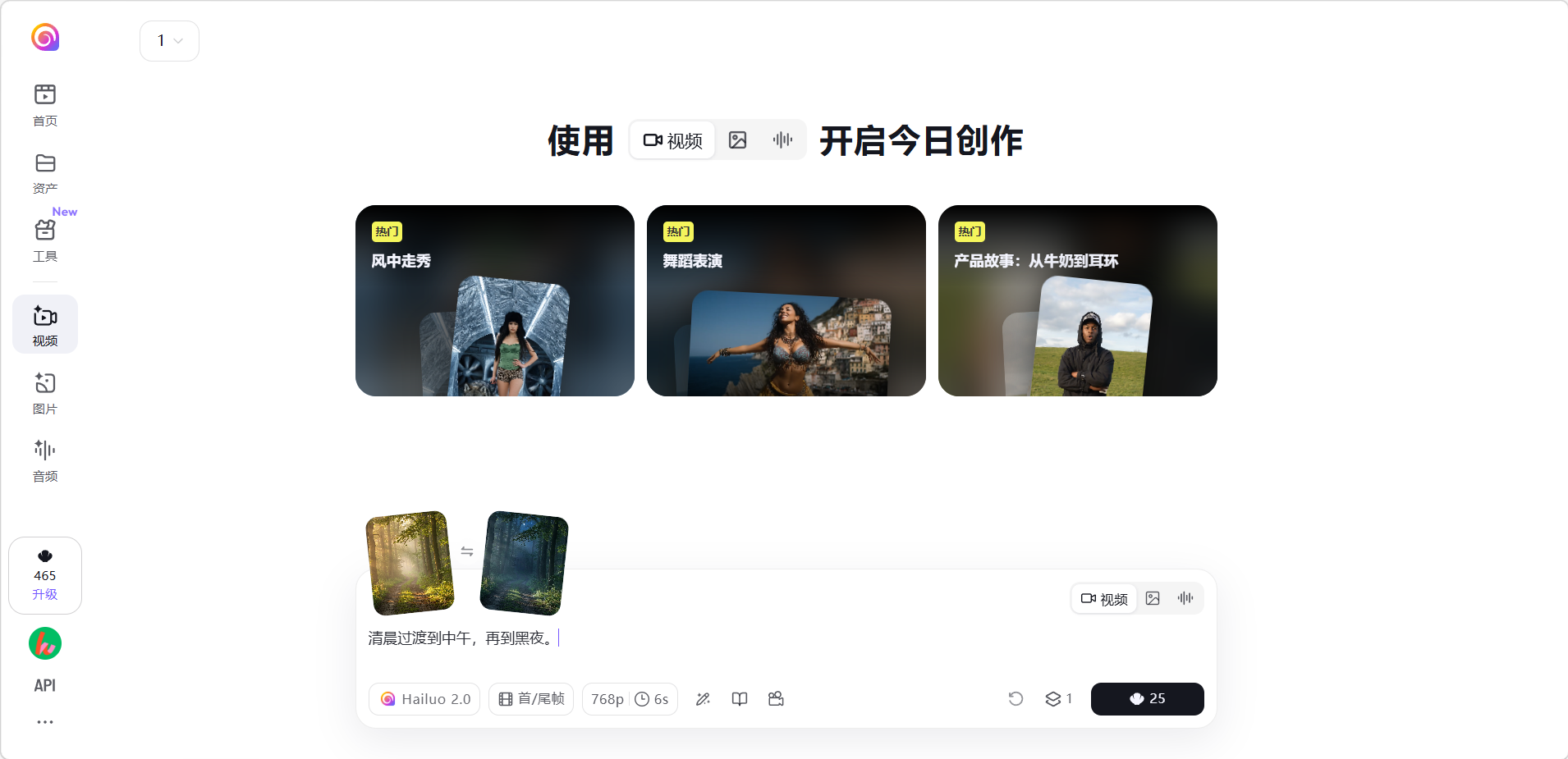 上传视频的起始画面和结束画面,AI在两者之间自动生成过渡动态。