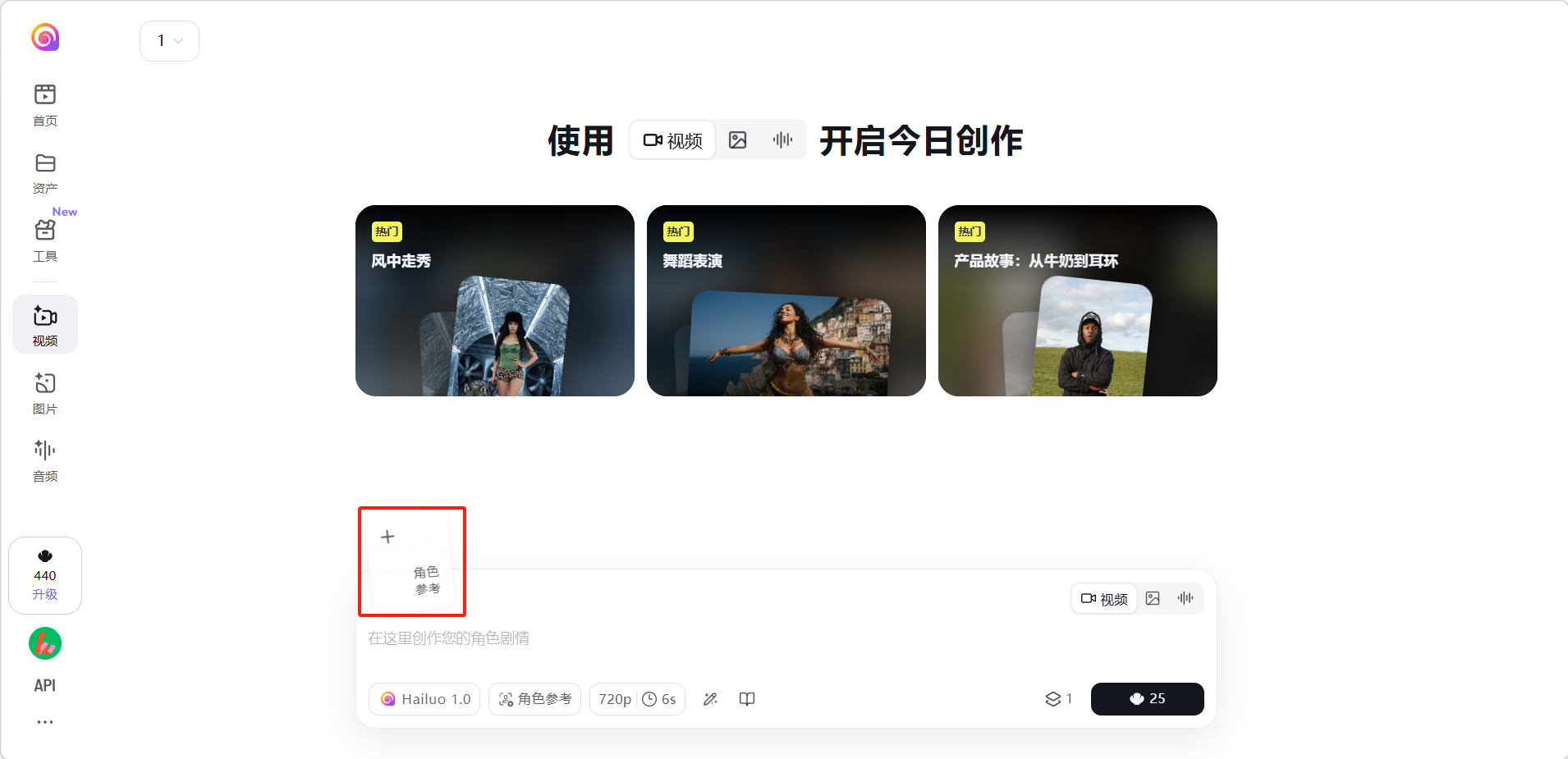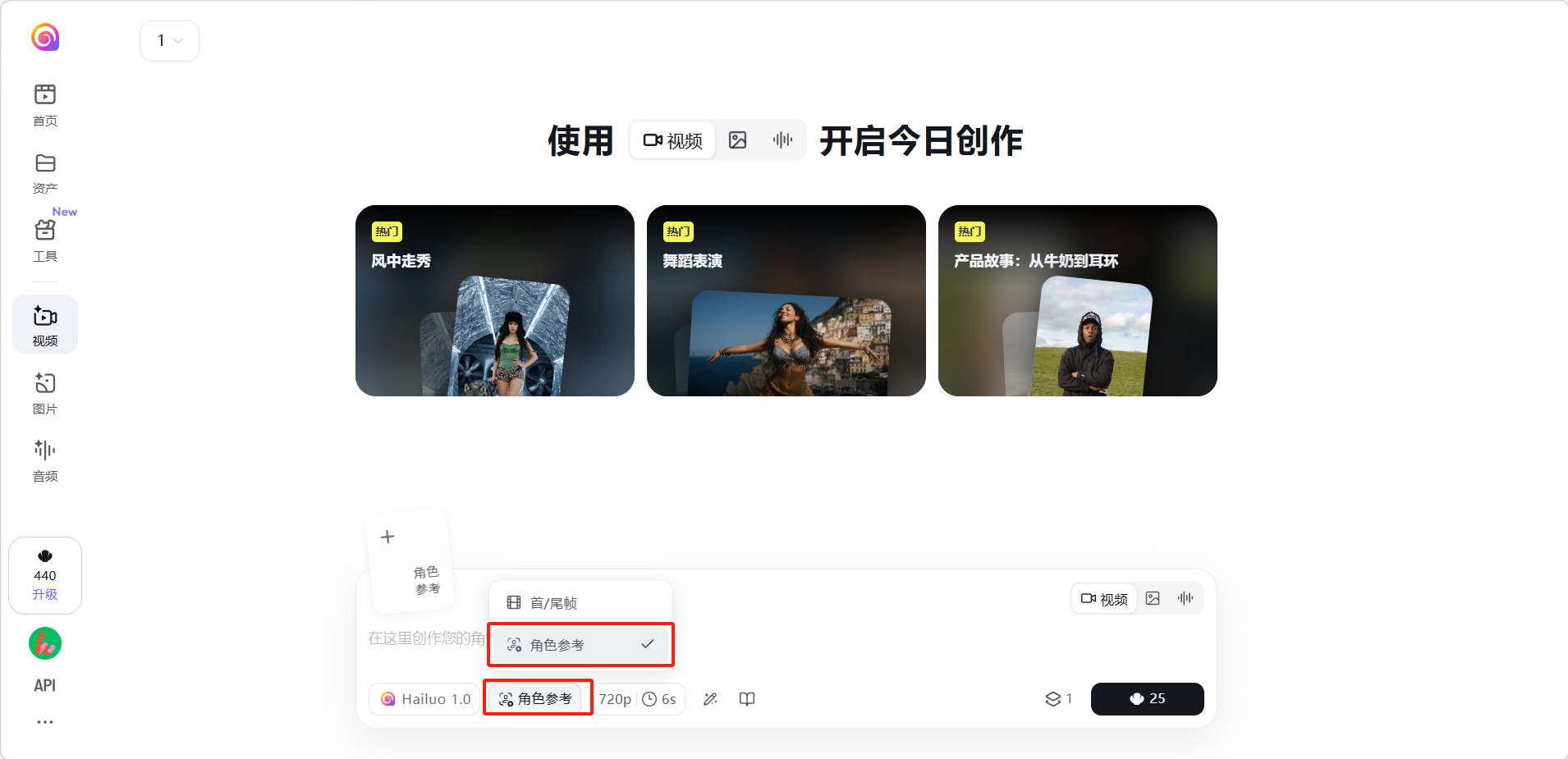 方案二:系列视频的角色一致性创作。用「角色参考」功能,上传同一个角色的正面照,每次创作不同场景(如角色在咖啡馆、在街头、在图书馆)时都使用该参考图生成,就可以保持角色形象跨片段的高度一致,这是制作AI系列短片/短剧的核心方案。