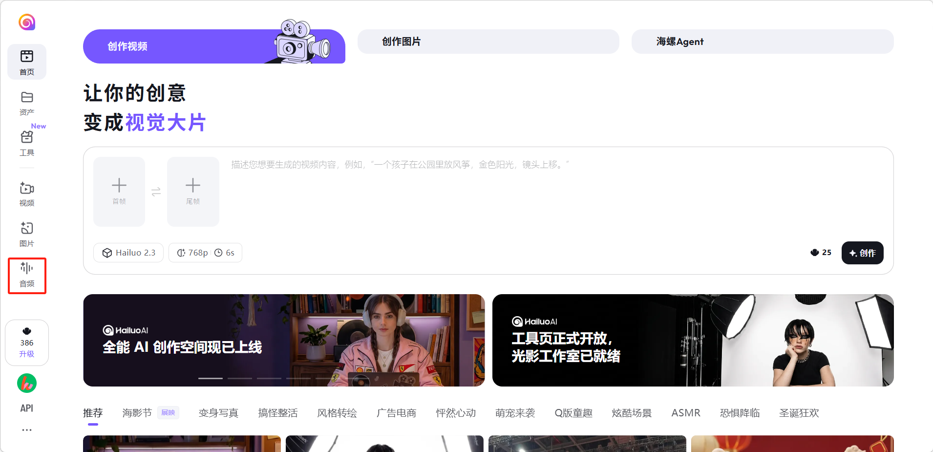 点击左侧边栏「音频」,或直接访问 MiniMax Audio。
