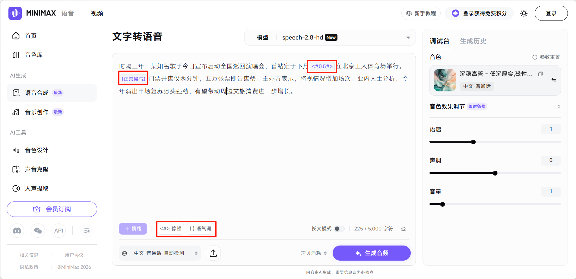 💡提示:使用语音功能需要登录MiniMax语音账号。
