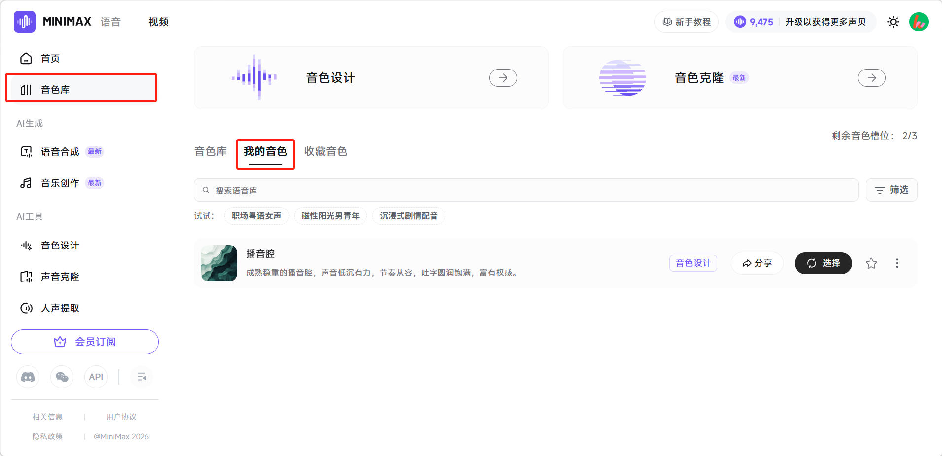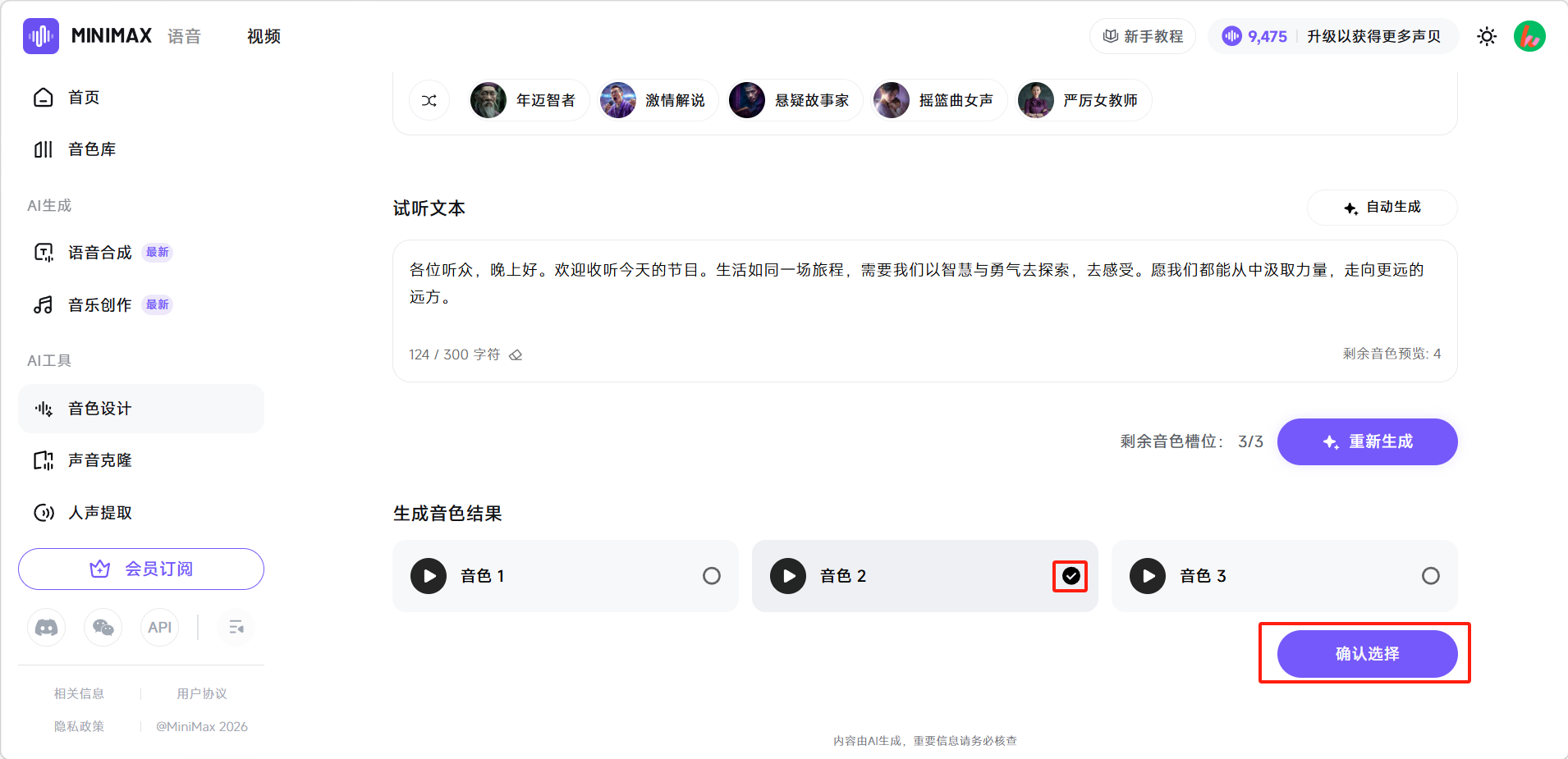 选择满意的音色,点击「确认选择」。
