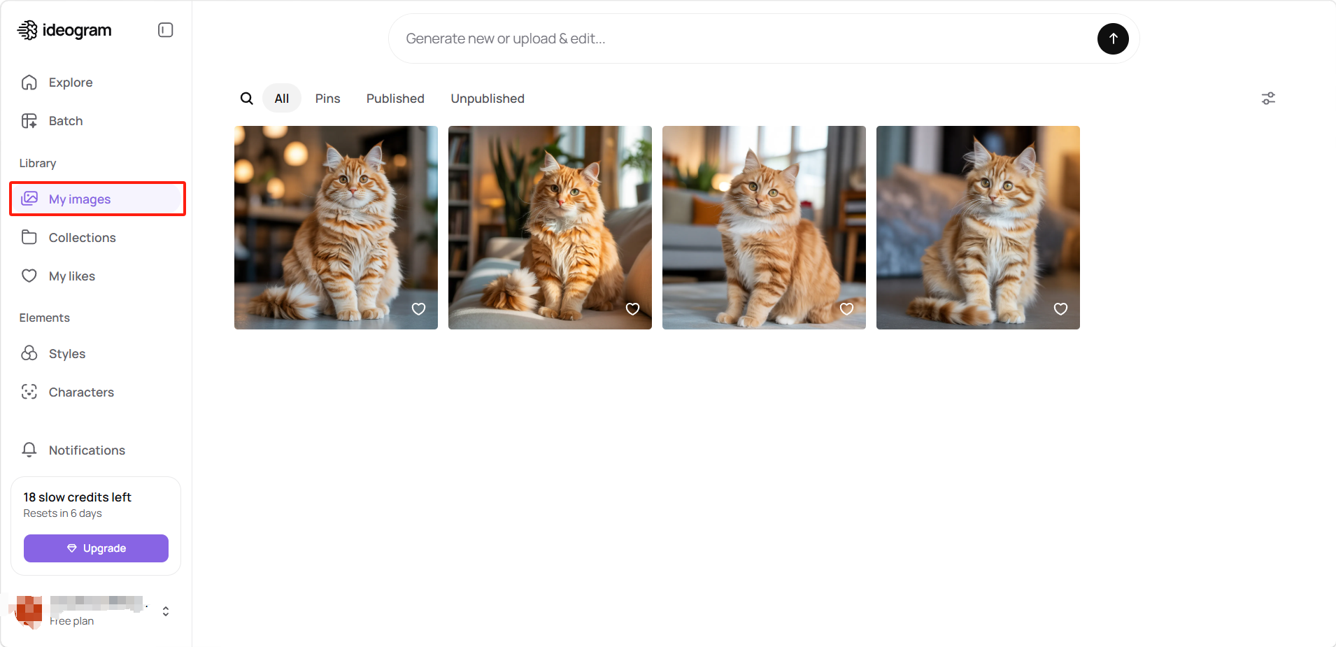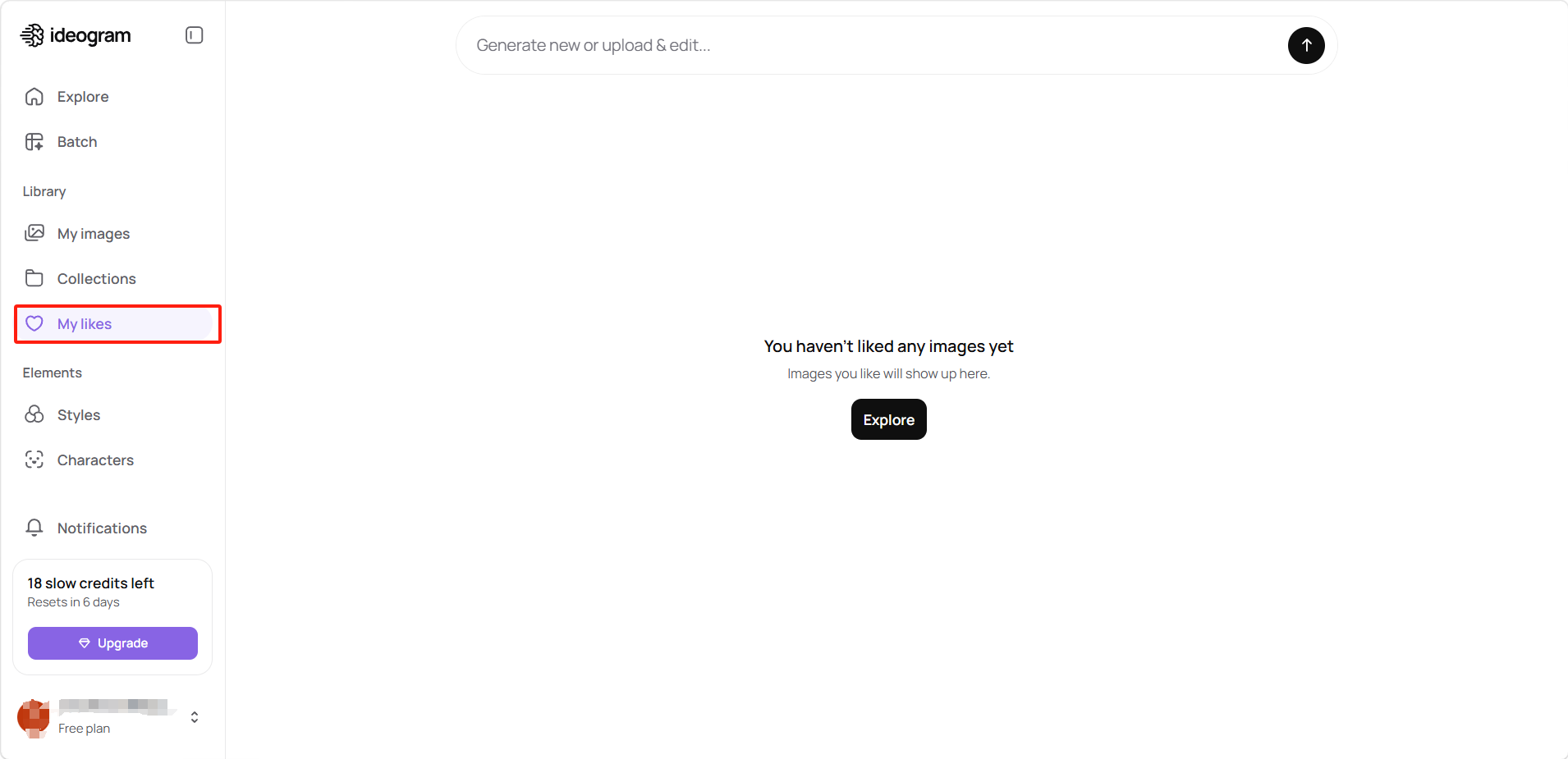 你在 Explore 社区中点赞的所有图像会自动同步到「我的喜欢」,方便你日后查阅感兴趣的创意和提示词参考。