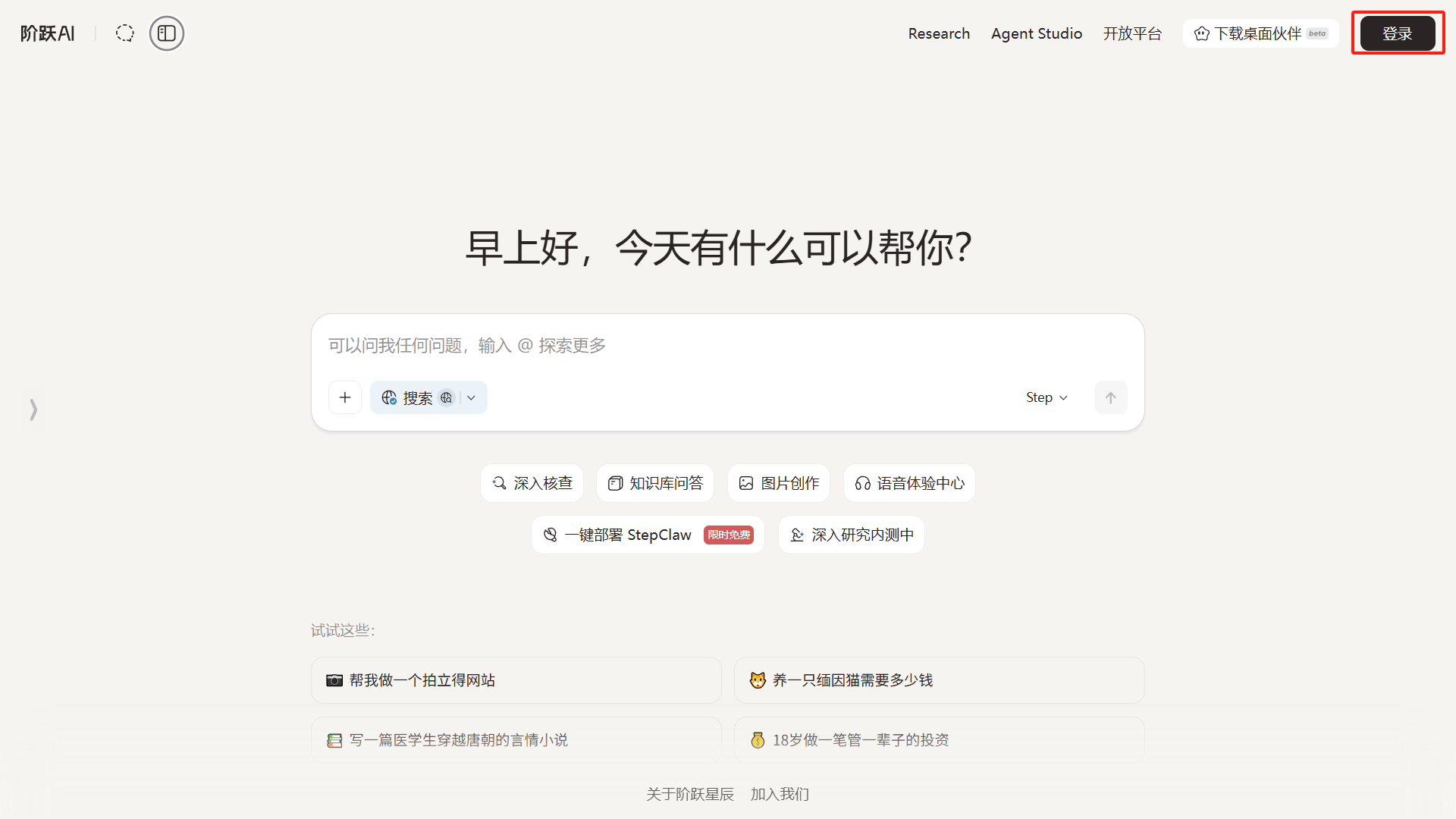 - 访问阶跃星辰官网 https://www.stepfun.com