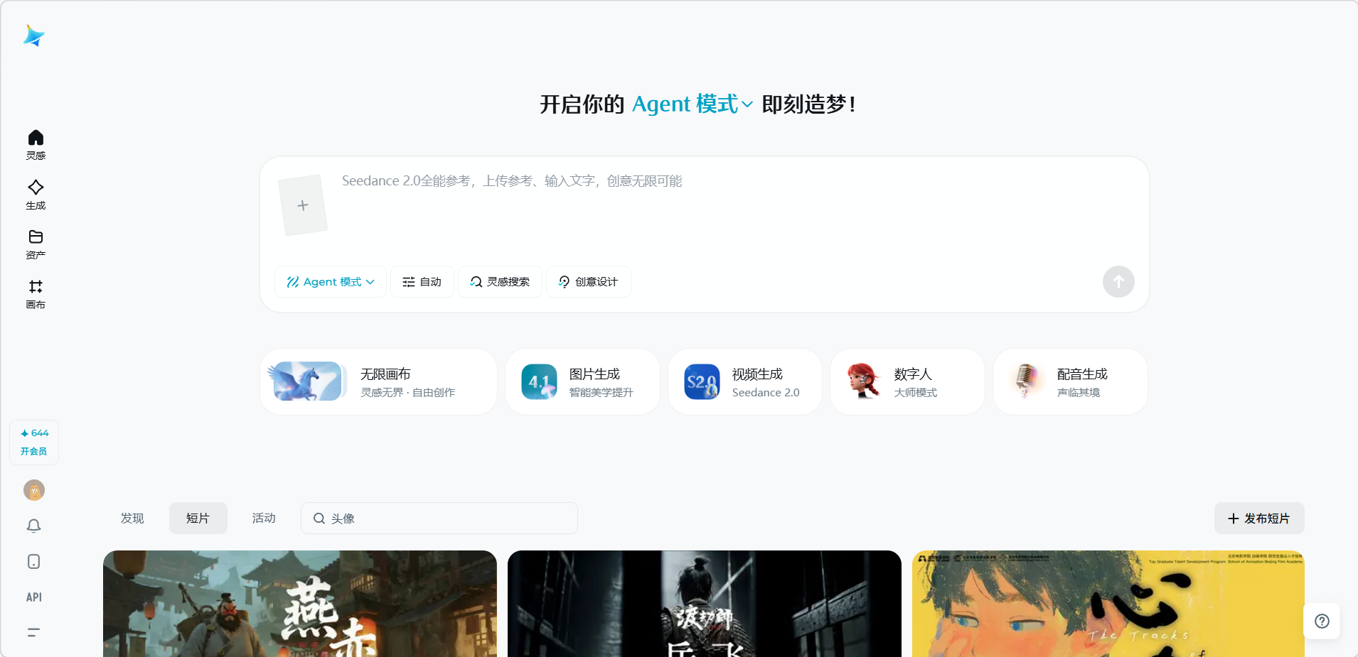 即梦AI网页版采用简洁的左侧导航栏设计,主要包含以下五个核心区域: