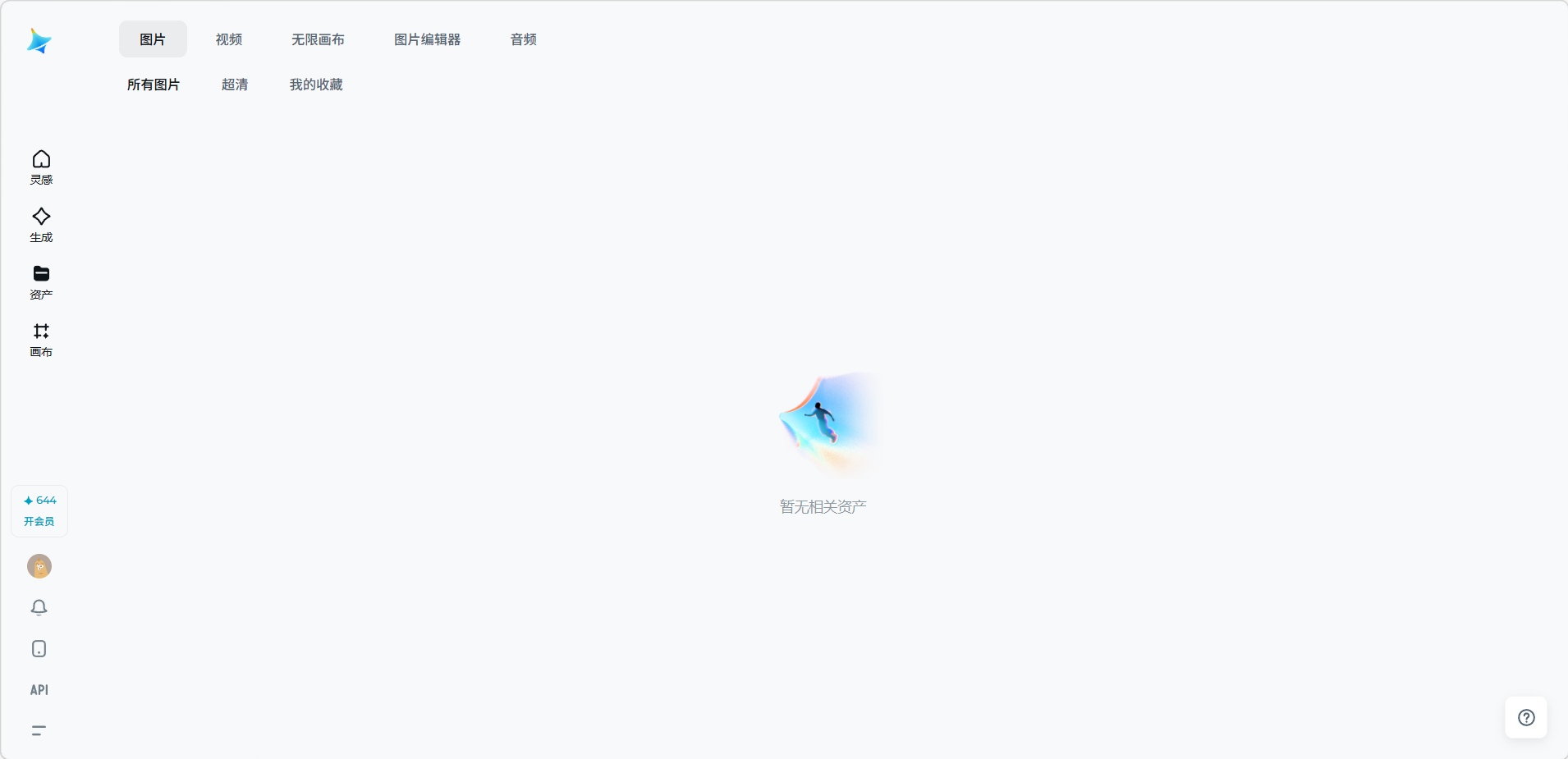所有已生成的图片,支持按「所有图片」「超清」「我的收藏」筛选