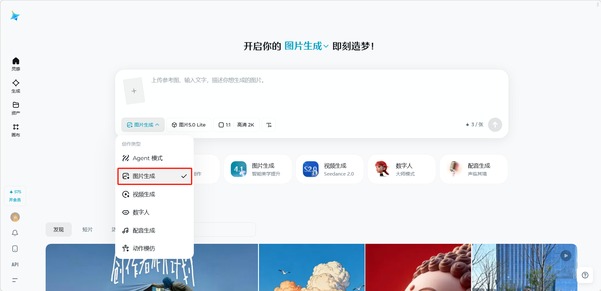 - 图片模型版本: 可切换不同的图片生成模型(如图片 5.0 Lite),不同版本在画风和生成质量上有所差异