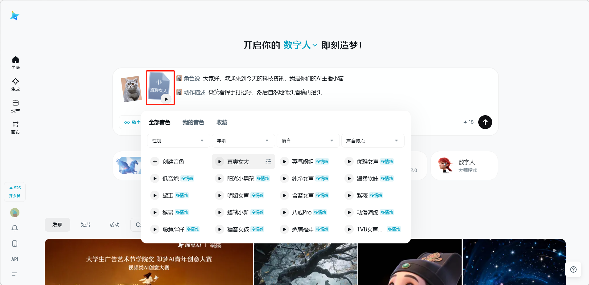 - 数字人功能支持克隆自己的声音,但需要完成声音采集流程