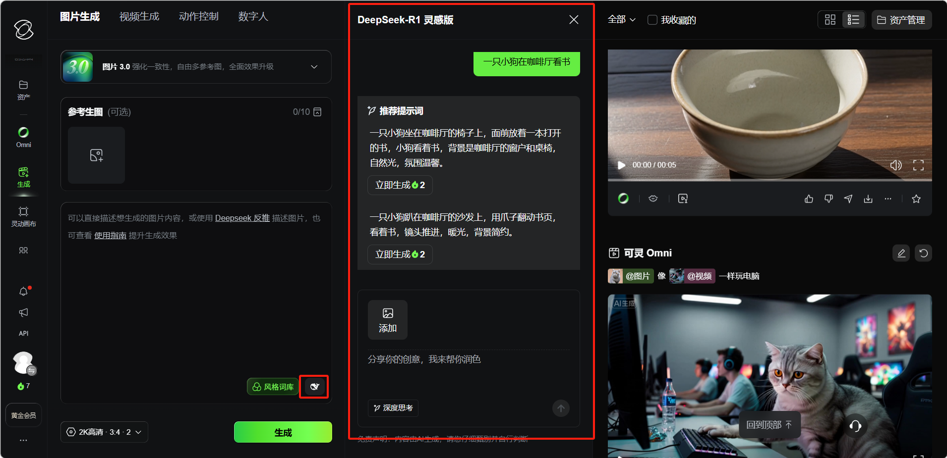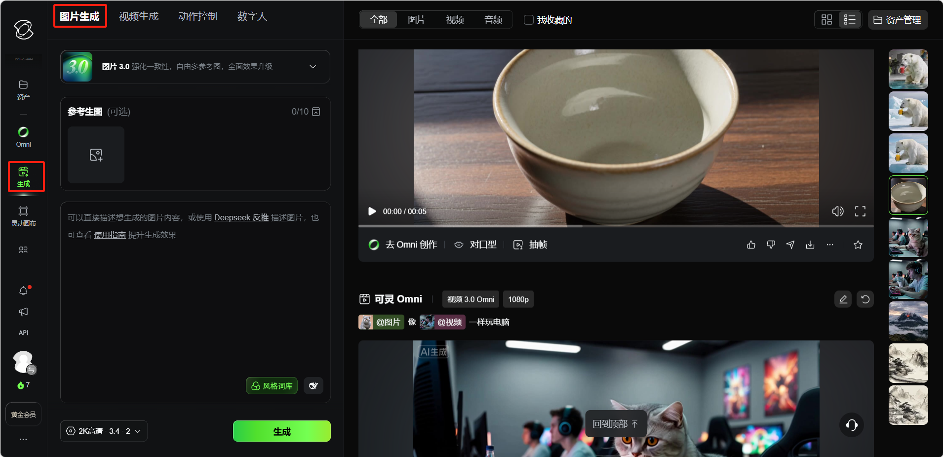 - 生成图片后可直接一键「生成视频」,将静态图转为动态视频