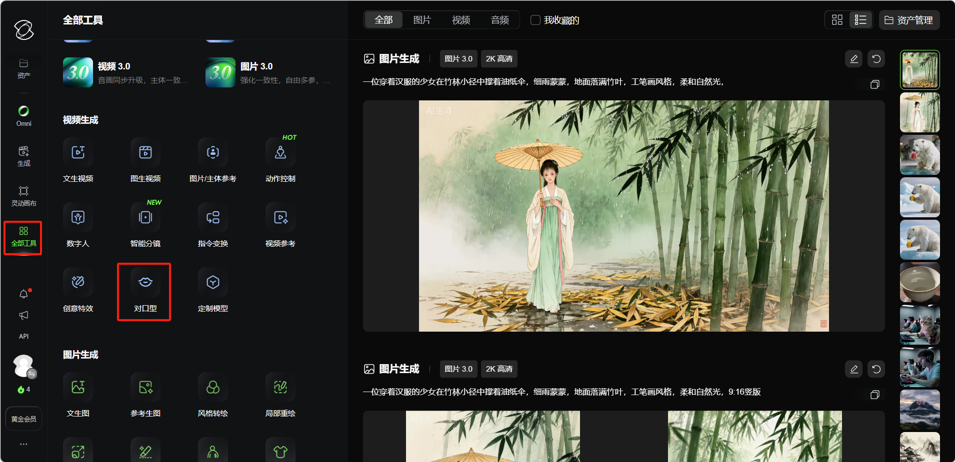 点击左侧导航的「全部工具」,选择「对口型」。